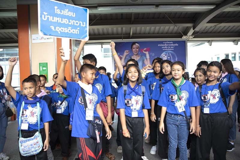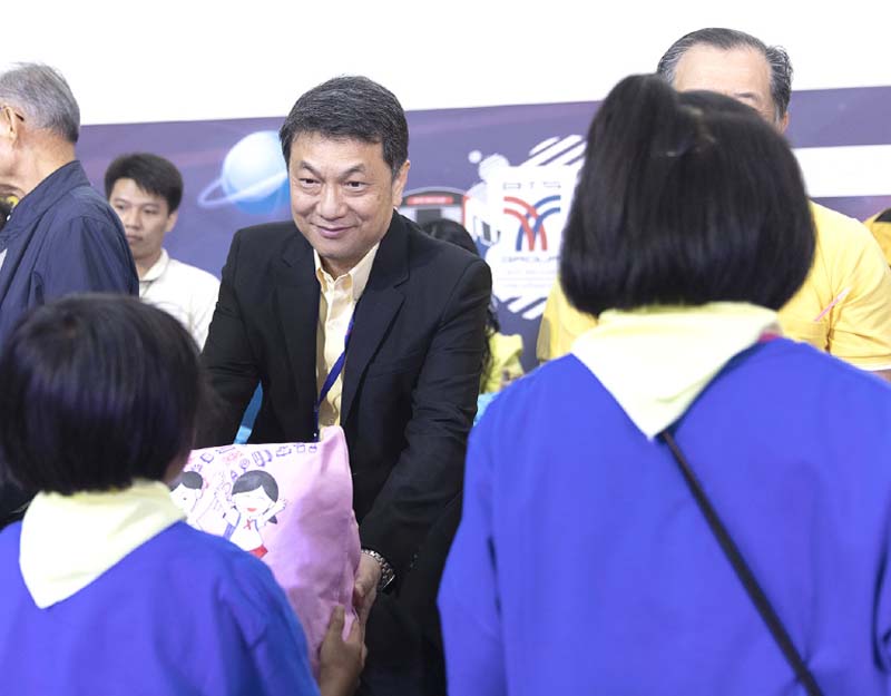 คีรี กาญจนพาสน์ ประธาน กก.กลุ่มบริษัทบีทีเอส พร้อมคณะผู้บริหารร่วมถ่ายภาพกับเด็กนักเรียน