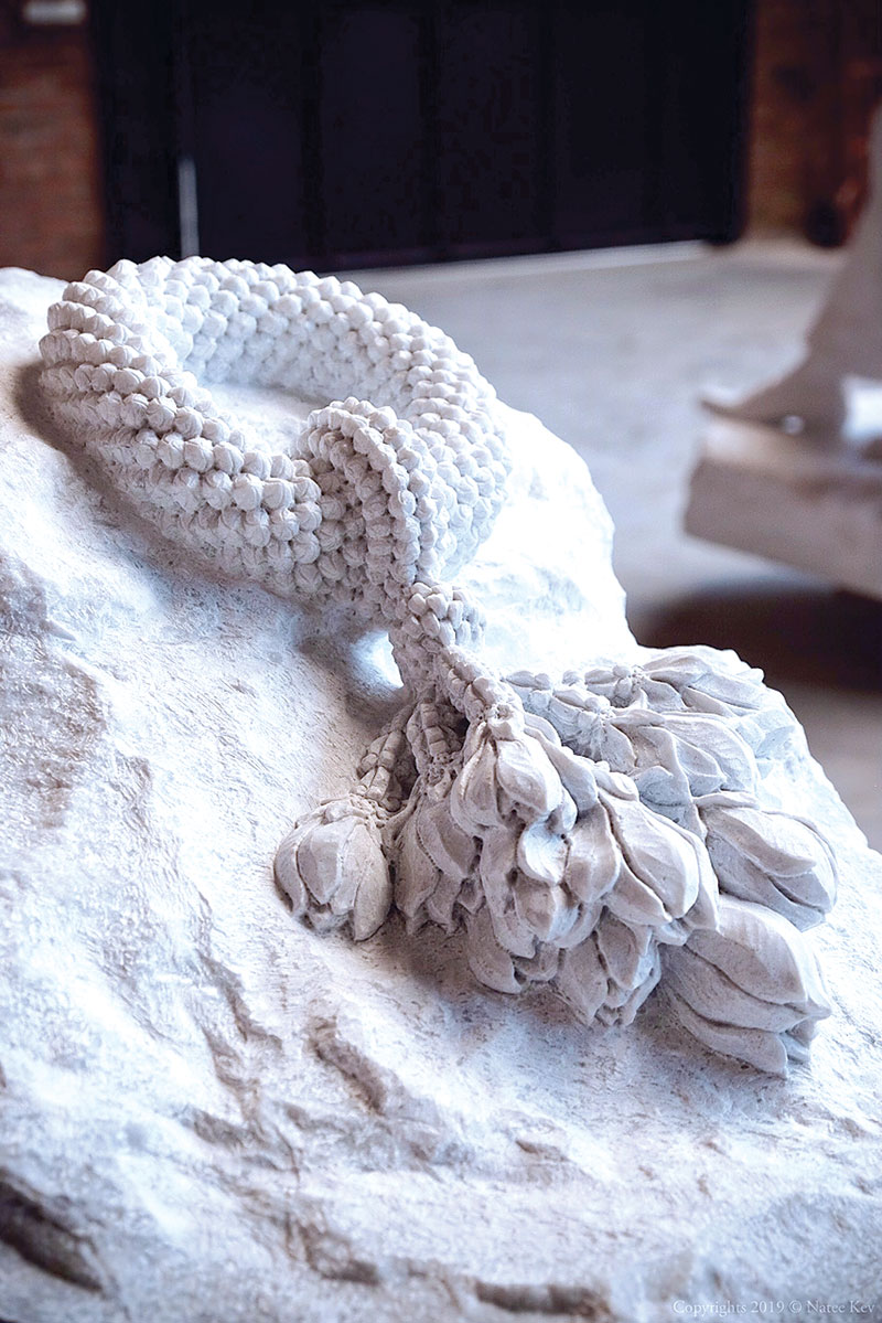 l นอกจากงานแกะสลักหินอ่อนแล้ว คุณนทียังทำงานแกะวัสดุอื่นๆ หรืองานประติมากรรมอื่นๆ ด้วยไหมครับ