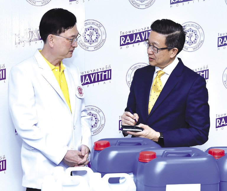 ทั้งนี้ บริษัท ไทยเบฟเวอเรจ จำกัด (มหาชน) ได้ออกมาขานรับนโยบายภาครัฐเร่งผลิตผลิตภัณฑ์ทำความสะอาดที่มีแอลกอฮอล์เป็นส่วนประกอบ เพื่อสนับสนุนการดูแลควบคุมการแพร่ระบาดไวรัส COVID-19 พร้อมส่งมอบผลิตภัณฑ์ทำความสะอาดจากแอลกอฮอล์ให้กับโรงพยาบาลราชวิถี โดยมี กมลนัย ชัยเฉนียน ผู้ช่วยกรรมการผู้อำนวยการใหญ่เป็นผู้แทน บริษัท ไทยเบฟเวอเรจ จำกัด (มหาชน) ส่งมอบผลิตภัณฑ์ทำความสะอาดจากแอลกอฮอล์ แด่ นพ.สมเกียรติ ลลิตวงศา ผู้อำนวยการโรงพยาบาลราชวิถี พร้อมด้วย นพ.เกรียงศักดิ์อติพรวณิช อายุรแพทย์โรคปอดนายแพทย์ชำนาญการพิเศษ, ภญ.ชิดชนนี โกศลพัฒนดุรงค์ หัวหน้างานผลิตยาผสมทั่วไป เพื่อร่วมป้องกันการแพร่ระบาดไวรัส COVID-19 ณ โรงพยาบาลราชวิถี
