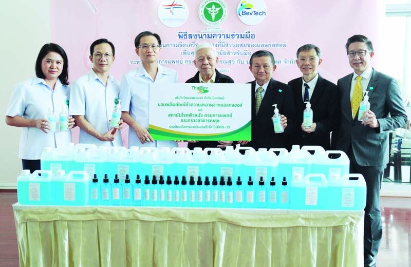 นับเป็นความร่วมมือครั้งสำคัญ เพื่อร่วมกันก้าวผ่านวิกฤติ COVID-19 ด้วยความร่วมมือกันของภาครัฐและภาคเอกชน ระหว่าง กรมการแพทย์ กระทรวงสาธารณสุข และ บริษัท เบฟเทค จำกัด ซึ่งเป็นบริษัทในเครือของบริษัท ไทยเบฟเวอเรจจำกัด (มหาชน) ในการลงนามความร่วมมือสนับสนุนการผลิตเครื่องสำอางที่มีส่วนผสมของแอลกอฮอล์ เพื่อสุขภาพอนามัยสำหรับมือ เพื่อให้บุคลากรทางการแพทย์และสถานพยาบาลเข้าถึงผลิตภัณฑ์ทำความสะอาดจากแอลกอฮอล์อย่างรวดเร็วและทั่วถึง ลดการระบาดของโรคติดเชื้อไวรัส COVID-19 โดยมี นพ.สมศักดิ์ อรรฆศิลป์อธิบดีกรมการแพทย์ พร้อมด้วย นพ.ณัฐพงศ์วงศ์วิวัฒน์ รองอธิบดีกรมการแพทย์, พญ.มิ่งขวัญ วิชัยดิษฐ ผู้อำนวยการสถาบันโรคผิวหนัง, ดร.พิษณุ วิเชียรสรรค์,บรรจง ชินธนะศิริ และ กมลนัย ชัยเฉนียน ร่วมลงนาม ณ สถาบันโรคผิวหนัง เมื่อเร็วๆ นี้