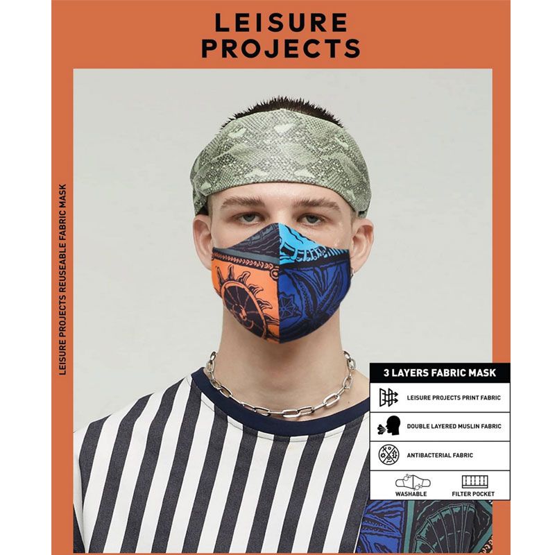 แบรนด์สำหรับหนุ่มสายแฟชั่นอย่าง Leisure Project ดีไซน์หน้ากากอนามัยผ้ามัสลิน 2 ชั้น มีประสิทธิภาพในการป้องกันละอองฝอยและละอองน้ำได้ดีที่สุด พร้อมผ้าแอนตี้แบคทีเรียระดับคอสเมติคเกรด ลดการสะสมของเชื้อแบคทีเรียและกลิ่นอับชื้นได้ดี ราคา 300-350 บาท โดยสามารถสั่งซื้อได้ทางออนไลน์ Line ID : @LEISUREPROJECTS และ www.LEISUREPROJECBKK.com