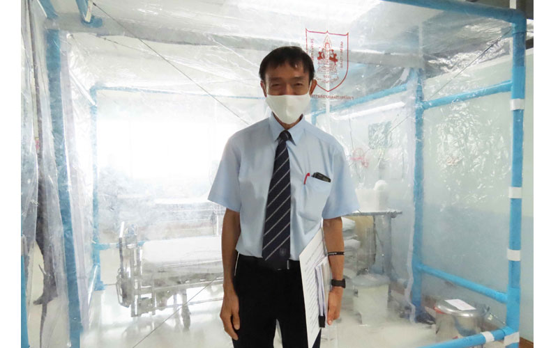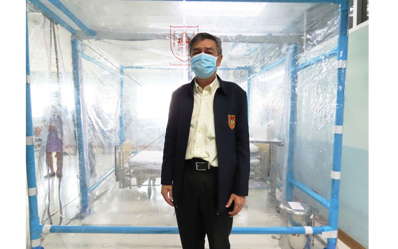 คุณบุญพงษ์ กิจวัฒนาชัย ผู้อำนวยการศูนย์วิศวกรรมสนับสนุนต้านภัย COVID-19 วิศวกรรมสถานแห่งประเทศไทยฯ กล่าวว่า “ตู้ความดันลบ (Negative Pressure Cabinet)” ได้ออกแบบให้มีความปลอดภัยทางการแพทย์และหลักวิศวกรรม ในการดูแลผู้ป่วยในโรงพยาบาลทั้งในและนอกสถานที่ โดยมี 2 แบบ คือ แบบที่ 1 ตู้ความดันลบขนาดเล็ก สำหรับ 1 เตียง หรือคนไข้นั่ง 3- 4 คน ตามระยะห่างความปลอดภัยต่อการแพร่เชื้อ ขนาดตู้ 1.30 x 2.60 x 2.20 เมตร เพียงพอที่จะใส่เตียงคนไข้ ความกว้าง ประมาณ 0.60 เมตร ยาว 1.90 เมตร และเสาน้ำเกลือสูง 2.10 เมตร ห้องมีน้ำหนักเบาและสามารถเคลื่อนย้ายได้ง่าย ใช้เวลาในการติดตั้งเพียง 15 นาที ใช้ต้นทุนประมาณ 8,500 บาท หากต่อเป็น 2 ยูนิตโดยใช้เสากลางร่วมก็จะยิ่งลดต้นทุนให้ต่ำลงอีก