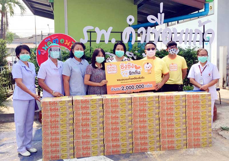 ผลิตภัณฑ์นมถั่วเหลือง“ซังซัง” ผุดแคมเปญ “ซังซัง…รักกัน” พร้อมสู้ COVID-19ส่งมอบนมถั่วเหลืองคั้นสดคุณภาพดีให้บุคลากรทางการแพทย์ในโรงพยาบาล 441 แห่งทั่วประเทศ หน้าด่านสำคัญในการเสียสละแรงกายแรงใจดูแลผู้ติดเชื้อโรค COVID-19 เตรียมขยายไปยังส่วนงานอื่นที่สร้างประโยชน์ให้กับประเทศต่อไป