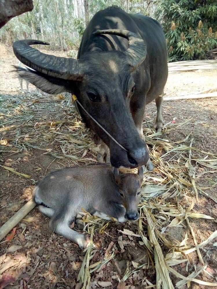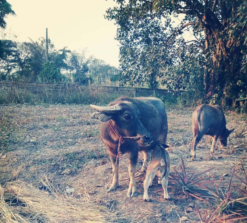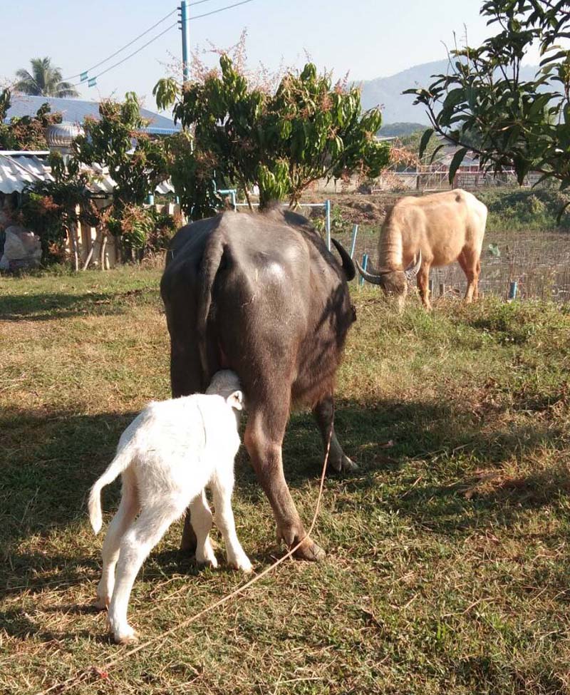 นับจากวันที่ 29 มกราคม 2563 ที่คณะของเราได้ร่วมกันไถ่ชีวิตโค กระบือจากโรคฆ่าสัตว์จำนวน 27 ตัว แล้วมอบให้นักเรียนโรงเรียนชาวนา สำนักวิปัสสนาสากลไร่เชิญตะวันนำไปเลี้ยงดูต่อไปตามสัญญา จากวันนั้นจนถึงวันนี้ โค กระบือที่พวกเราไถ่ชีวิตออกมาได้ตกลูกมาแล้วรวมสี่ตัว โดยตัวแรกตกลูกหลังจากที่เราไถ่ชีวิตมาได้ประมาณ 1 สัปดาห์ (หากคุณอ่านแนวหน้ามาโดยตลอดคงจำได้ดีว่าเป็นลูกกระบือเผือก)