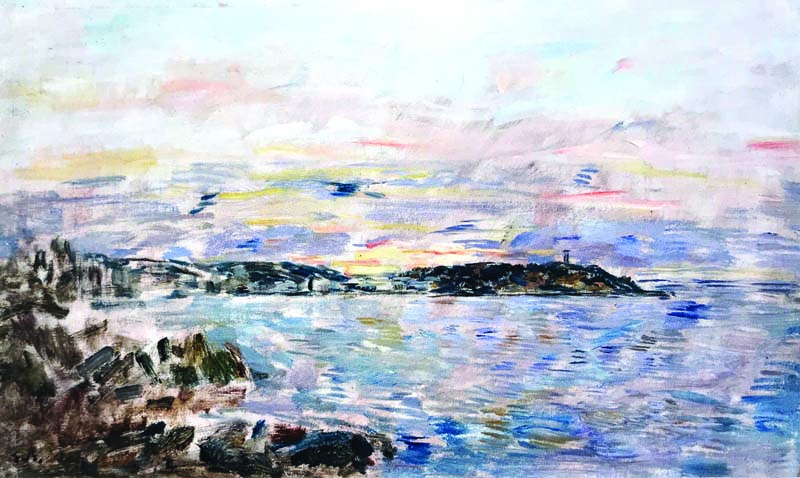 Eugene Louis Boudin เป็นจิตรกรแนว Impressionism ชาวฝรั่งเศสที่ชื่นชอบการวาดงานทิวทัศน์ เขาเป็นผู้เชี่ยวชาญในการวาดทะเลและท้องฟ้าอย่างยิ่งยวดจนมีสมญานามว่า King of the skies เขาเกิดที่Honfleur เป็นบุตรของกะลาสีเรือ เมื่ออายุได้เพียง 10 ปี เขาก็ได้ทำงานในเรือกลไอน้ำที่วิ่งระหว่าง Le Havre และ Honfleurครอบครัวของเขาได้ย้ายไปอยู่ Le Havre ที่ซึ่งบิดาเขาเลิกเป็นกะลาสีเรือและหันมาเปิดร้านขายเครื่องเขียนและกรอบรูป และอนุญาตให้เขาทำงานด้วยจนภายหลังเขาได้แยกตัวออกมาเปิดร้านเอง เขาจึงได้มีโอกาสได้รู้จักกับศิลปินที่มาอาศัยอยู่แถวนั้น อาทิ Constant Troyon และ Jean francois Millet ซึ่งภายหลังได้ชักชวนให้ Boudin หันมาทำงานศิลปะด้วย