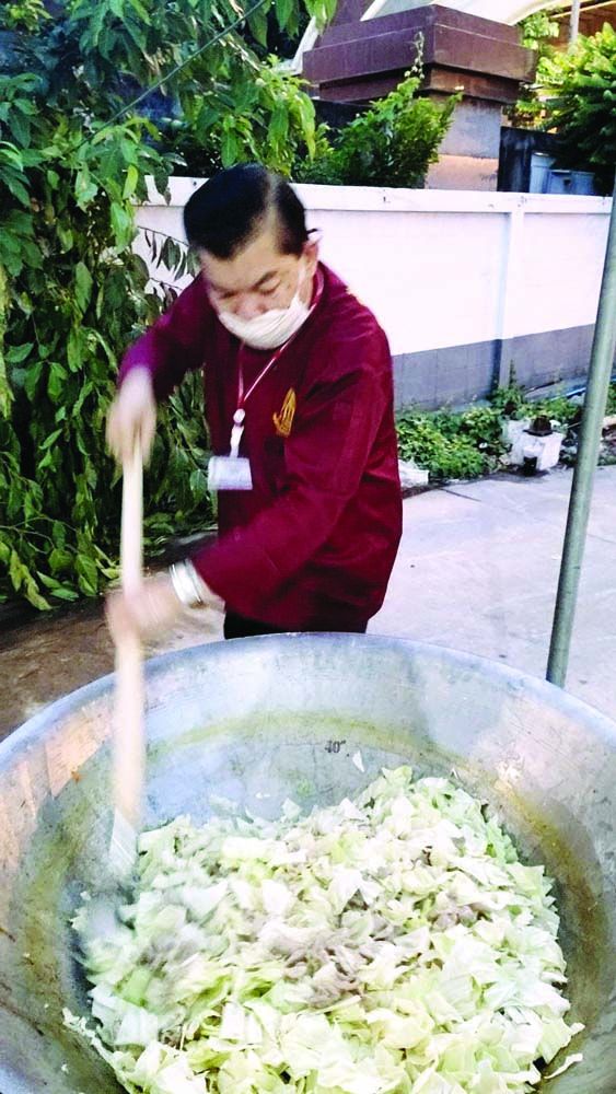ติดเชื้อไวรัสระบาดมาก แต่เราก็ทนเห็นความลำบากและเดือดร้อนอย่างหนักมากๆ ของประชาชนไม่ได้เราจึงตั้งโรงครัว เพื่อช่วยเหลือเจ้าหน้าที่ ที่ปฏิบัติงานตามจุดต่างๆ และประชาชนที่เดือดร้อน บางพื้นที่ที่เราไม่สามารถเข้าไปแจกอาหารให้ประชาชนได้ บางพื้นที่ปิดเราจึงทำอาหารฝากไปกับเจ้าหน้าที่เข้าไปแจกอีกที สำหรับพื้นที่ที่ทำอาหารเราคัดกรองบุคลากรที่เข้ามาอย่างเคร่งครัด เราใช้คนทำแค่ 10 คน เพื่อให้ง่ายต่อการควบคุม และต้องเป็นคนเดิมเท่านั้น บุคคลนั้นต้องไม่เสี่ยงต่อการติดเชื้อเป็นอันขาด ห้ามบุคคลภายนอกเข้ามา มีเจลแอลกอฮอล์ ให้ล้างมือตลอด