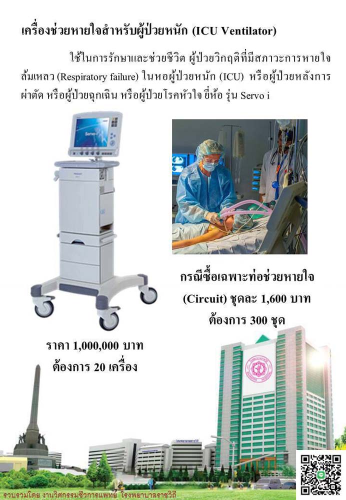 เนื่องจากมีการแพร่ระบาดของเชื้อไวรัสโควิด-19 เป็นวงกว้าง จำนวนผู้ติดเชื้อเพิ่มสูงขึ้นอย่างต่อเนื่อง จึงมีความจำเป็นในการจัดซื้ออุปกรณ์ทางการแพทย์ที่จำเป็นเป็นการเร่งด่วน เพื่อดำเนินการ ช่วยเหลือทั้ง ผู้ป่วย และป้องกันบุคลากรทางการแพทย์ผู้ใกล้ชิด ในเบื้องต้นโครงการฯ สามารถรวบรวมเงินบริจาคได้กว่า 1,680,00 บาท ทั้งนี้ ได้นำเงินไปดำเนินการจัดซื้อเครื่องช่วยหายใจสำหรับผู้ป่วยหนัก ที่มีสภาวะการหายใจล้มเหลว จำนวน 1 เครื่อง มูลค่า 1,000,000 บาท, ท่อช่วยหายใจสำหรับผู้ป่วยหนัก รวมทั้งอุปกรณ์ป้องกันเพื่อความปลอดภัยของบุคลากรทางการแพทย์ ได้แก่ หน้ากากอนามัย จำนวน 10,000 ชิ้น นอกจากนี้ยังได้ร่วมมือ 4 พันธมิตรธุรกิจ ได้แก่ บริษัท ไทยประกันชีวิต จำกัด (มหาชน), บริษัทบัตรกรุงไทย จำกัด (มหาชน), บริษัท ไพลอน จำกัด (มหาชน) และ บริษัท แกลอรี่ อินทีเรีย จำกัด มอบเครื่องฟอกอากาศประสิทธิภาพสูงชนิดเคลื่อนย้ายได้ จำนวน 4 เครื่อง เครื่องละ45,000 บาท เพื่อลดความเสี่ยงการแพร่ระบาดเชื้อไวรัสในอากาศไปยังผู้ใกล้ชิด โดยเฉพาะบุคลากรทางการแพทย์ รวมทั้ง พันธมิตรธุรกิจอีกมากมาย อาทิ ธนาคารไทยพาณิชย์ จำกัด (มหาชน), บริษัท ไทยน้ำทิพย์ คอมเมอร์เชียล จำกัด ฯลฯ”