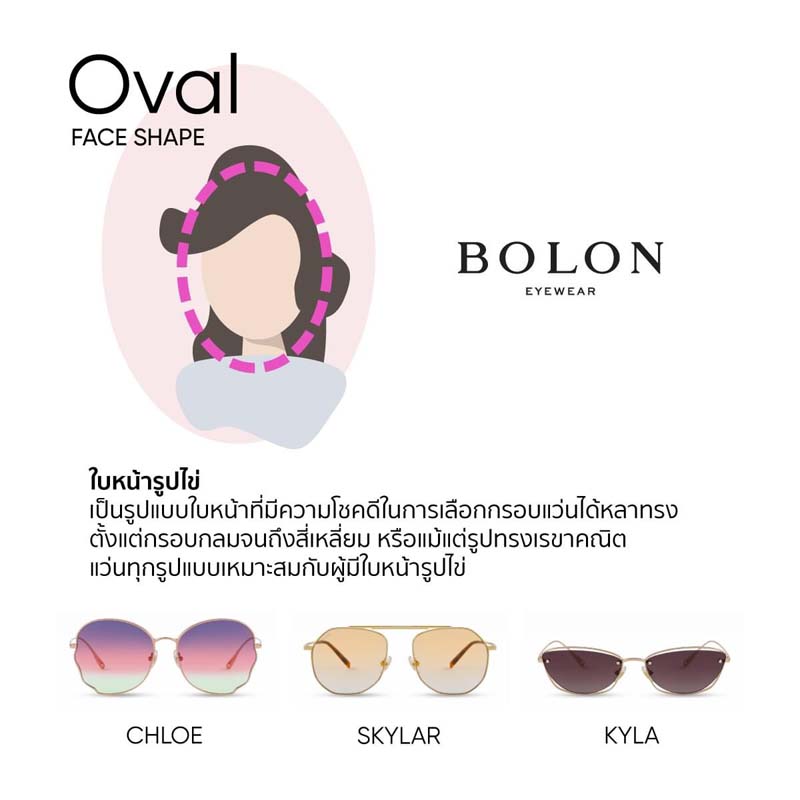ใบหน้ารูปไข่คุณคือผู้โชคดีที่เลือกกรอบแว่นได้แทบจะทุกรูปทรง และด้วยสัดส่วนใบหน้าที่สมดุลทำให้คุณสามารถเลือกแว่นตาได้ทั้งแบบคลาสสิก หรือแม้แต่ทรงแฟชั่นที่โฉบเฉี่ยวแบบสุดๆ ถ้าจะเลือกเป็นแว่นกันแดดก็เพียงแค่เลือกสีเลนส์ให้เหมาะสมกับสไตล์การแต่งตัวในวันนั้นของคุณเท่านั้น