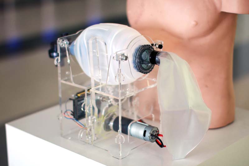 นี่คือเครื่องช่วยหายใจอัตโนมัติขนาดเล็ก (Mini Emergency Ventilator)ของ ศูนย์รวมนวัตกรรมสู้โควิด-19 (KMITL GO FIGHT COVID-19) โดยทีมนักวิจัย และพัฒนานวัตกรรม สถาบันเทคโนโลยีพระจอมเกล้าเจ้าคุณทหารลาดกระบัง (สจล.)ที่ทดสอบการใช้งานเพื่อวางแผนผลิตไว้สำรองใช้ในกรณีฉุกเฉิน โดยทีม สจล. ได้นำร่องส่งมอบนวัตกรรมบางส่วนให้แก่โรงพยาบาลในกรุงเทพฯแล้ว