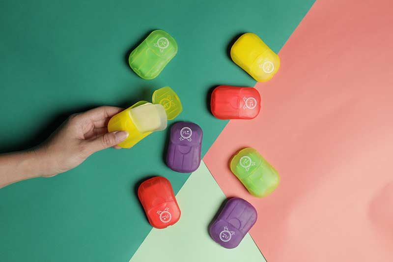 พกพาอาหารส่วนตัวไปได้ทุกที่และตัวช่วยสำคัญที่ขาดไม่ได้เลย ณ เวลานี้ก็คือ สบู่แผ่นอนามัย ขนาดพกพา หลีกเลี่ยงการใช้สบู่ร่วมกับผู้อื่น โดยเนื้อสบู่จะมีลักษณะเป็นแผ่นคล้ายกระดาษแผ่นบางๆ ใช้ถูทำความสะอาดมือและล้างออกด้วยน้ำสะอาด มีให้เลือก 4 กลิ่น ทั้งกลิ่นกุหลาบ, ที-ทรี, เลมอน และลาเวนเดอร์