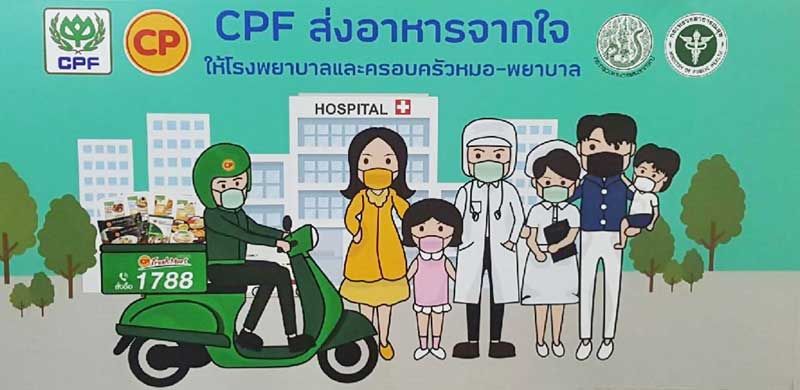 บริษัท เจริญโภคภัณฑ์อาหาร จำกัด (มหาชน) หรือ ซีพีเอฟ ต่อยอดการดำเนิน “โครงการ CPF ส่งอาหารจากใจร่วมต้านภัย COVID-19” เป็นระยะที่สองโดยรับอาสาช่วยส่งมอบอาหาร ให้แก่สมาชิกครอบครัวของทีมหมอ พยาบาลบุคลากรทางการแพทย์ เสริมกำลังใจและแทนคำขอบคุณความทุ่มเทและเสียสละและยังเดินหน้า ส่งมอบอาหารปลอดภัยเสิร์ฟให้บุคลากรทางการแพทย์โรงพยาบาลรัฐ88 แห่งทั่วประเทศอย่างต่อเนื่อง พร้อมทั้งรับเป็นตัวกลางของประชาชนช่วยจัดส่งของบริจาคให้กับโรงพยาบาล
