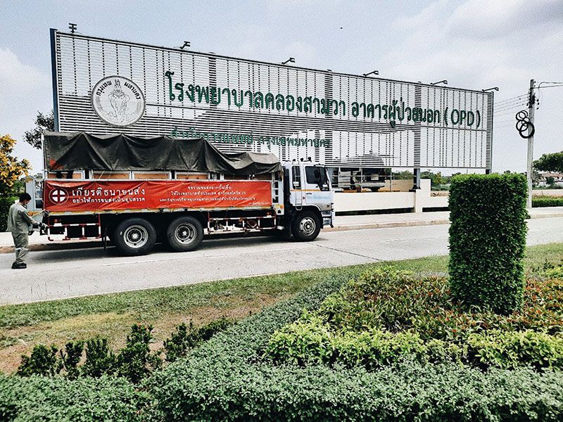โดย นางสาวมินตรามนต์เสรีนุสรณ์ ประธานเจ้าหน้าที่บริหาร บมจ.เกียรติธนาขนส่ง ได้กล่าวว่า บริษัททราบว่าอุปสรรคที่สำคัญในการจัดส่งอุปกรณ์ทางการแพทย์ที่มีขนาดใหญ่ให้แก่โรงพยาบาลต่างๆ มันคือการขนส่ง แล้วในขณะที่เราเป็นบริษัทขนส่งเราช่วยตรงนี้ได้อย่างที่เราไม่ได้ลำบากอะไรมาก เราก็ไม่อยากให้เรื่องการขนส่งมาเป็นอุปสรรคในการที่แพทย์ พยาบาลจะได้รับน้ำใจ หรือความช่วยเหลือจากผู้ใจบุญ หรือใครก็ตามที่เขาอยากช่วย”