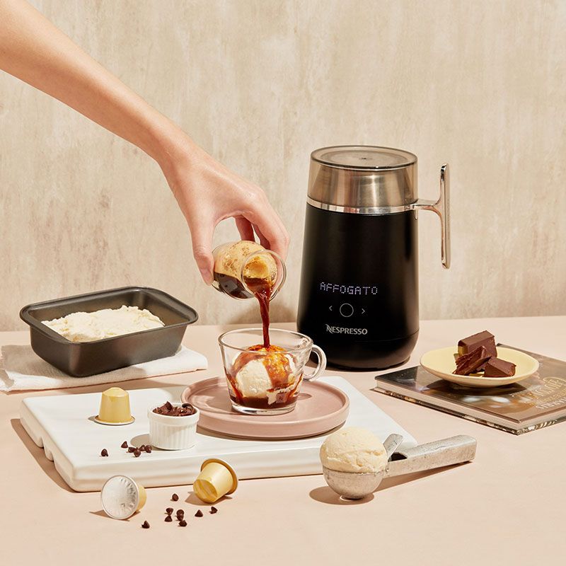 VANILLA AFFOGATO (วานิลลา อัฟโฟกาโต้) สายไอศกรีมต้องถูกใจสิ่งนี้ นอกจากจะช่วยเติมความสดชื่นให้กับช่วงบ่ายที่แสนน่าเบื่อ ยังมีกลิ่นกาแฟนุ่มละมุนของวานิลลาอีกด้วย วิธีทำก็แสนง่าย สกัดแคปซูลกาแฟ Barista Creations Vanilla Éclair (บาริสต้า ครีเอชั่นส์วานิลลา เอแคลร์) ปริมาณ 25 มล.จากเครื่องชงกาแฟเนสเพรสโซ แล้วเทลงในโถเครื่อง Barista Recipe Maker จากนั้นเลือกกดปุ่มเมนู Affogato (อัฟโฟกาโต้)แล้วหันมาเตรียมตักไอศกรีมรสวานิลลา 1 สกู้ปลงในแก้วที่ชอบ เมื่อเครื่องทำงานเสร็จแล้วให้เทกาแฟลงในแก้วที่มีไอศกรีม และโรยด้วยช็อกโกแลตสับชิ้นเล็กตามความต้องการ