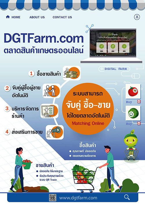 จากสถานการณ์การแพร่ระบาดของโรคติดต่อเชื้อไวรัสโคโรนา 2019 หรือ COVID-19 กระทรวงเกษตรและสหกรณ์ โดย นายเฉลิมชัย ศรีอ่อน รมว.เกษตรและสหกรณ์ ไม่ได้นิ่งนอนใจต่อสถานการณ์ ล่าสุด ดร.จูอะดี พงศ์มณีรัตน์ เลขาธิการสำนักงานมาตรฐานสินค้าเกษตรและอาหารแห่งชาติ (มกอช.) จึงส่งเสริมให้เกษตรกรขายสินค้าเกษตรผ่านช่องทางออนไลน์ ผ่านเว็บไซต์ตลาดสินค้าเกษตรออนไลน์ www.DGTFarm.com ซึ่งเป็นเว็บไซต์ที่ทำให้ผู้ซื้อและผู้ขายสามารถติดต่อซื้อขายได้โดยไม่จำเป็นต้องพบปะกัน ปัจจุบันมีสมาชิกที่ใช้บริการเว็บไซต์ DGTFarm.com โดยมีสินค้าให้เลือกสรรกว่า 553 รายการ ได้แก่ ผัก ผลไม้ ข้าว สินค้าเกษตรแปรรูป ไข่ สินค้าประมงสินค้าปศุสัตว์ และเครื่องสำอางซึ่งทั้งหมดเป็นสินค้าของเกษตรกรในพื้นที่เกษตรแปลงใหญ่ และเกษตรกรทั่วไป ที่ได้รับรองมาตรฐาน ทำให้ผู้บริโภคมั่นใจถึงความปลอดภัย และที่สำคัญยังเป็นการช่วยเหลือเกษตรกรโดยตรง”