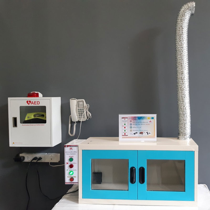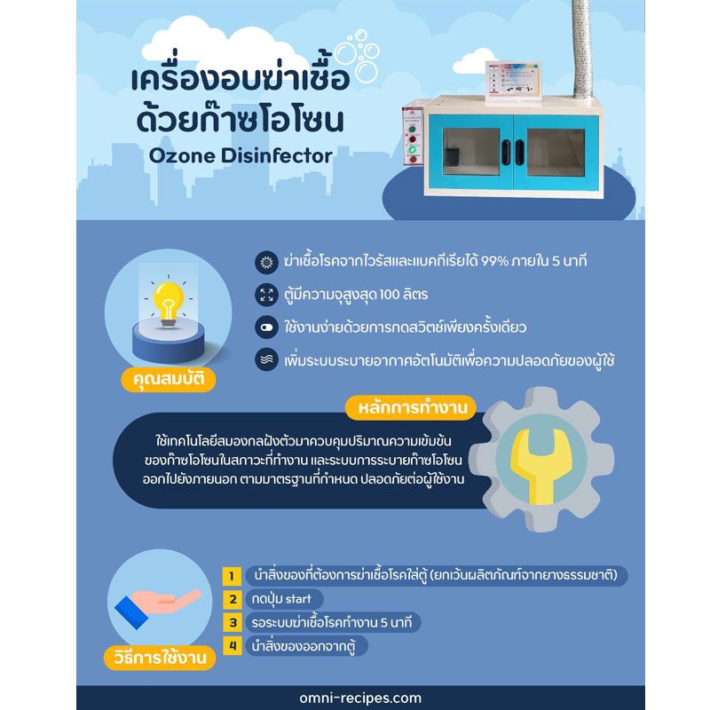 ทางคณะผู้คิดค้นจึงประดิษฐ์เครื่องอบฆ่าเชื้อ Ozone Disinfector โดยใช้ก๊าซโอโซนมาประยุกต์ใช้ในการฆ่าเชื้อโรค สำหรับก๊าซโอโซนเป็นสารที่มีคุณสมบัติเป็นตัวออกซิไดส์อย่างแรง (Strong Oxidizing) ใช้หลักการนำอิเล็กตรอนออกจากตัวทำปฏิกิริยาอื่นๆ ในระหว่างการเกิดปฏิกิริยารีดอกซ์ (Oxidation-Reduction (Redox) Reaction)