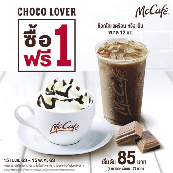แมคคาเฟ่ช็อกโกแลต เย็นหรือร้อนขนาด 12 ออนซ์ กับโปรโมชั่น 1 แถม 1 ในราคาเริ่มต้น 85 บาท ถึง 15 พ.ค. เฉพาะร้านแมคคาเฟ่ที่ร่วมรายการ, บริการไดร์ฟ ทรู และแมคเดลิเวอรี่ ส่งฟรี! เมื่อจ่ายผ่านบัตรเครดิต/เดบิต 200 บาทขึ้นไป ถึง 30 เม.ย. ที่ ร้านแมคโดนัลด์ ไดรฟ์ ทรู กว่า 70 สาขาทั่วประเทศ โทร.1711