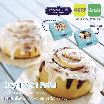 “ซินนาบอน” ชวนชิมขนมอบรสชาติสุดคลาสสิกในโปรโมชั่นพิเศษ เมื่อซื้อ Triple 9 Set-Minibon Classic, Mini Chocobon และ Mini Caramel Pecanbon รวม 9 ชิ้น 1 กล่อง ในราคา 329 บาท รับเซตซินนาบอนคลาสสิก 4 ชิ้น 1 กล่อง มูลค่า 225 บาท ฟรี! บริการส่งฟรีในระยะไม่เกิน 5 กม. จากจุดบริการเดลิเวอรี่ @ ซีทีไอ ทาวเวอร์ โทร.08-64627302