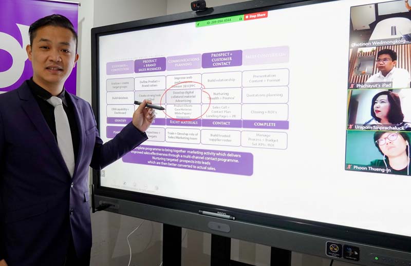 สำหรับ Distance Learning Solution นำเอาข้อดีของจอ IFP ของ BenQ ผนวกเข้ากับ Software มุ่งเน้นการใช้ Platform Online ซึ่งทดแทนการพบปะพูดคุยระหว่างกัน เช่น การติดต่อผ่านสมาร์ทโฟน การใช้แอพพลิเคชั่นพวก Skype, Cisco Webex, Google Hangout, ZOOM, Go To Meeting และ Microsoft Teams