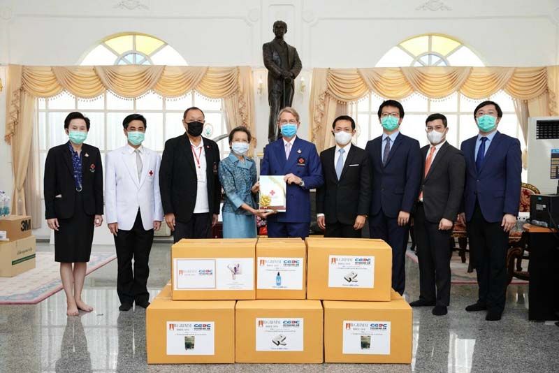 ดร. ฮาราลด์ ลิงค์ ประธาน บี.กริม ปันน้ำใจ สู้ภัยโควิด-19 มอบหน้ากาก N95 เครื่องวัดอุณหภูมิ และเจลล้างมือ ให้ รพ.จุฬาลงกรณ์ สภากาชาดไทย