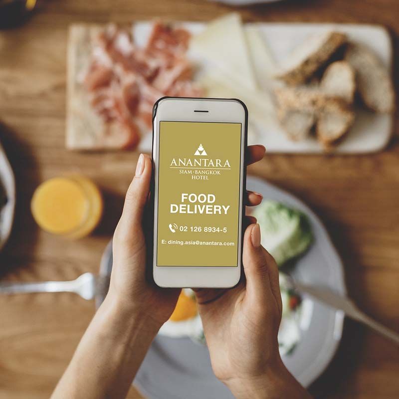 เพิ่มความสะดวกรวดเร็วในทุกมื้ออาหารให้คุณ ด้วยบริการสั่งและมารับเอง หรือจัดส่งเมนูรสเลิศที่คุณชื่นชอบ จาก โรงแรมอนันตรา สยาม กรุงเทพ ถึงบ้านคุณ มีทั้งอาหารอิตาเลียน จากห้องอาหารรางวัลการันตีมากมาย อย่างห้องอาหารบิสก็อตติ อาหารไทย จากห้องอาหารไทยประวัติยาวนาน สไปซ์ มาร์เก็ต และ เมนูเพื่อสุขภาพ หรือเบเกอรี่สดใหม่ จากร้านมอคค่า แอนด์ มัฟฟินส์ เมนูแนะนำ อาทิ เกี๊ยวเนื้อตุ๋นและเห็ดทรัฟเฟิลดำ, ปูนิ่มผัดพริกไทยอ่อน, แซนด์วิชหน้าแซลมอนรมควัน เป็นต้น พร้อมเสิร์ฟความสุขถึงบ้านคุณ ได้ทุกวัน ตั้งแต่ 10.00-21.00 น. สอบถามพิ่มเติมและสั่งอาหารได้ที่ โทร.02-1268934-5 หรืออีเมล dining.asia@anantara.com