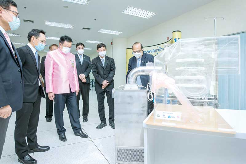 โดย พงศธรเปิดเผยว่า ปตท.สผ.เล็งเห็นถึงความสำคัญของการดูแลบุคลากรทางการแพทย์ ซึ่งมีความเสี่ยงสูงต่อการติดเชื้อจากการดูแลรักษาผู้ป่วย ปตท.สผ. และบริษัท เอ ไอ แอนด์โรโบติกส์เวนเจอร์ส จำกัด ซึ่งเป็นบริษัทในเครือ จึงได้ร่วมกับ บริษัท เอ.ไอ.เทคโนโลยี จำกัด ซึ่งเป็นบริษัทพันธมิตร นำต้นแบบเตียงเคลื่อนย้ายผู้ป่วยแรงดันลบ ที่พัฒนาขึ้นโดยคณะแพทยศาสตร์
