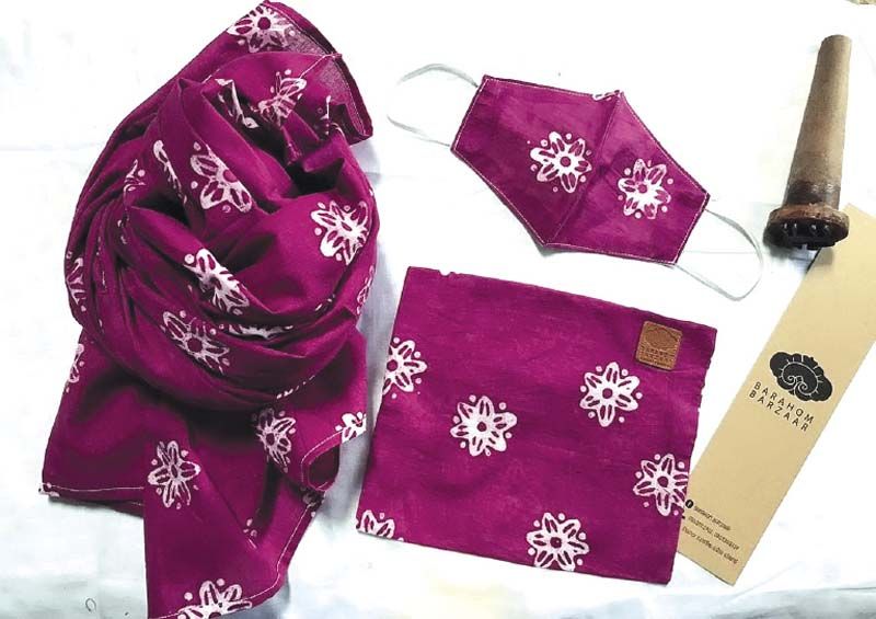 นางฟารีดา กล้าณรงค์ หัวหน้ากลุ่มบาราโหมบาร์ซาร์ และวิทยากรศูนย์เรียนรู้การท่องเที่ยวอารยธรรมปัตตานีในฐานะเครือข่ายวิจัยของสำนักงานคณะกรรมการส่งเสริมวิทยาศาสตร์ วิจัยและนวัตกรรม (สกสว.) ในโครงการ“วิจัยและพัฒนาศักยภาพเยาวชนนอกระบบจังหวัดชายแดนใต้ สู่การเป็นผู้ประกอบการสร้างสรรค์บนฐานทุนทางวัฒนธรรมชายแดนภาคใต้” กล่าวว่า ได้พลิกวิกฤติเป็นโอกาสในช่วงที่มีการแพร่ระบาดของโควิด-19 ภายใต้แนวคิดการนำสิ่งที่มีอยู่มาสร้างสรรค์เป็นลวดลายบนงานหัตถกรรม จากที่ทำผ้าบาติกด้วยบล็อกไม้ โดยประยุกต์มรดกทางประวัติศาสตร์ของชุมชนบาราโหมมาสร้างจุดเด่นในการสืบสานศิลปวัฒธรรมให้ลูกหลานของชุมชนและเผยแพร่แก่สังคม ด้วยการทำหน้ากากผ้าแทนหน้ากากอนามัยที่ขาดแคลน โดยด้านนอกใช้ผ้าฝ้ายพิมพ์ลวดลายเครื่องถ้วยชามโบราณที่ขุดพบในพื้นที่แล้วนำมาทำบล็อกไม้ด้านในเป็นผ้ามัสลินหรือผ้าสาลูซึ่งขั้นตอนการทำได้ศึกษาจากอินเตอร์เนต
