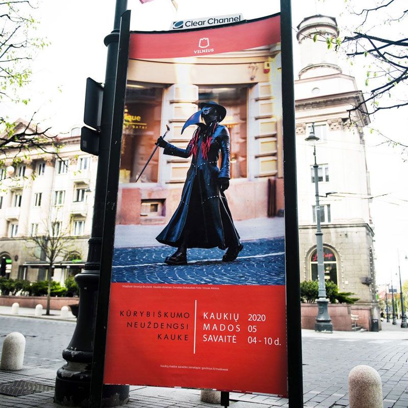 Mask Fashion Week สัปดาห์หน้ากากแห่งลิทัวเนีย งานแฟชั่นโชว์ที่ไม่มีแคทวอล์ค ไม่มีการเดินแบบ แต่นำเสนอแรงบันดาลใจสู้การแพร่ระบาดของ โควิด-19 ผ่านป้ายโฆษณากลางกรุงวิลนีอุส เมืองหลวงของลิทัวเนีย