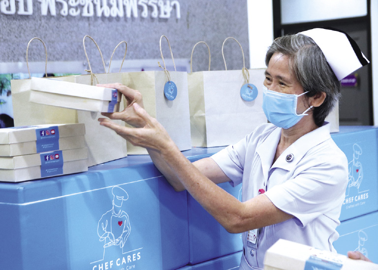 ชื่อดังในกรุงเทพฯ และภูเก็ต ร่วมกันทำกิจกรรมจิตอาสาเพื่อสังคม โดยการปรุงเมนูอร่อยชั้นเลิศที่เต็มไปด้วยคุณค่าทางโภชนาการ ส่งมอบให้ทีมแพทย์ พยาบาล และบุคลากรทางการแพทย์ สนับสนุนและเป็นกำลังใจในความเสียสละและความทุ่มเทเป็นทัพหน้าช่วยดูแลรักษาผู้ป่วยและช่วยประเทศเอาชนะ