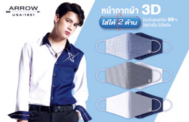 ทั้งนี้ หน้ากากผ้า 3D ARROW สามารถใส่ได้ 2 ด้าน ผสานนวัตกรรมสุดล้ำด้านหน้า ZINC NANO ที่มาพร้อมคุณสมบัติพิเศษ ANTI BACTERIA ได้ถึง 99% และด้านหลัง COOL MODE ใส่แล้วเย็น ผลิตจากเนื้อผ้านาโนซิงค์ ระบายอากาศได้ดี หายใจสะดวก ช่วยปัองกันฝุ่นละอองและการกระจายจากการไอหรือจาม ดีไซน์แบบ 3D กระชับพอดีกับรูปหน้า สามารถซักและนำกลับมาใช้ซ้ำได้ พิเศษ 2 ชิ้น เพียง 299 บาท มีจำหน่ายที่ : Ethailandbest : https://bit.ly/2ympK4w, SHOPPEE : https://bitly/3ckq6Hw และ LAZADA : https://bitly/2Kipeag