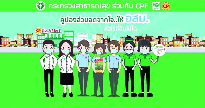 บริษัท เจริญโภคภัณฑ์อาหาร จำกัด(มหาชน) หรือ ซีพีเอฟ เห็นความสำคัญของอสม. เป็นป้อมปราการที่แข็งแกร่งช่วยให้สถานการณ์ของประเทศไทยดีขึ้นอย่างต่อเนื่อง จึงร่วมมือกับกระทรวงสาธารณสุข จัดโครงการ “คูปองส่วนลดจากใจให้ อสม. #ฮีโร่ที่ลืมไม่ได้” ส่งกำลังใจให้กับ อสม. ด้วยการมอบส่วนลดสุดพิเศษจากใจ จำนวน 1 ล้านใบ ช่วยค่าครองชีพสำหรับการซื้อสินค้าอาหารในร้านซีพี เฟรชมาร์ท จำนวน 1 ล้านใบ ให้ อสม.ทั่วประเทศ