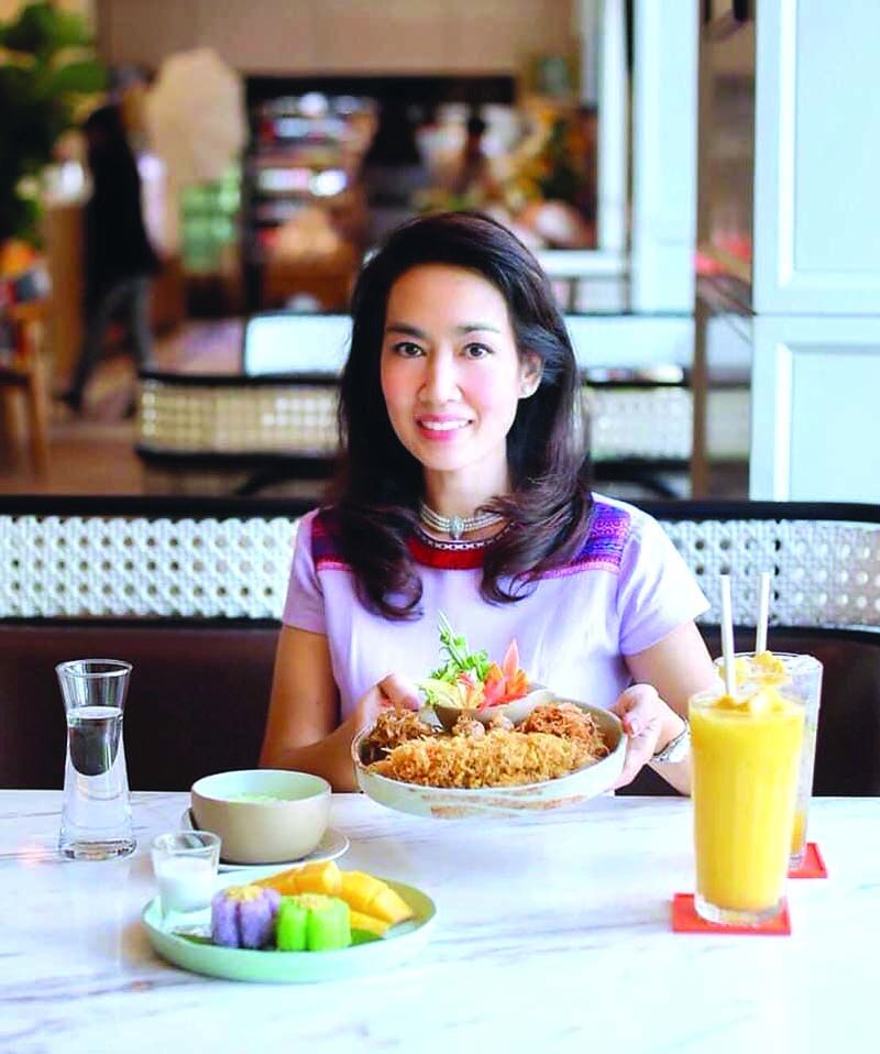 “เมนูข้าวแช่ของร้าน ได้คัดสรรข้าวหอมมะลิอินทรีย์มาให้เลือก2 ชนิด คือ ข้าวแช่หอมมะลิอินทรีย์และข้าวแช่หอมมะลิใบเตยอินทรีย์หุงจนสุกนุ่ม เสิร์ฟพร้อมน้ำลอยดอกมะลิที่ผ่านการอบจนหอมกรุ่น ทานกับเครื่องเคียงครบชุด เริ่มที่ลูกกะปิ ใช้ปลาเนื้ออ่อน กุ้งแห้ง ผสมผสานกับกะปิคลองโคนและเครื่องเทศสมุนไพร ปั้นลูกกลมให้เคี้ยวหนึบหนับพอดีคำ พริกหยวกสอดไส้ปูจ๋า เนื้อปูและเนื้อไก่บดปรุงรสกลมกล่อม ห่อด้วยไข่ฝอยทอดแม้วางพักไว้ยังกรอบหอมเหมือนเพิ่งยกขึ้นจากกระทะ หมูฝอยหวานเนื้อหมูฉีกปรุงรสด้วยเครื่องเทศจนลงตัว โรยหอมเจียวทอดกรอบไช้โป๊หวาน ผัดกับน้ำตาลจนขึ้นเงาสวยปรุงรสหวานนำ เค็มเล็กน้อยพอได้รส ในชุดยังเสริมทัพดับร้อนด้วยผักสดแกะสลัก เช่น กระชาย ต้นหอม พริกชี้ฟ้าแดง แครอต และมะม่วงเขียวเสวย ก่อนจบมื้อด้วยข้าวเหนียวมะม่วง มะม่วงน้ำดอกไม้สุกหอมหวานสดชื่น ท่านคู่ข้าวเหนียวมูนอัญชันและใบเตย อร่อยครบรสยกให้เป็นสำรับของคนรักสุขภาพได้เลย”