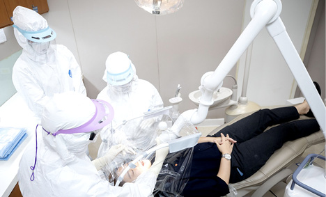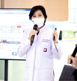 “ศูนย์ทันตกรรมของเราให้ความสำคัญในการคัดแยก (Triage) และการคัดกรอง (screening) มากเพื่อให้มั่นใจว่าทรัพยากรทางการแพทย์ที่มีอยู่ถูกใช้อย่างเหมาะสมเดิมทีมาตรฐานการดูแลคนไข้ของศูนย์ทันตกรรม เรายึดถือทั้งหลัก Standard และ Universal Precaution อยู่แล้ว แต่ในช่วงที่มีการระบาดของโรค COVID-19 นอกจาก Droplets และ Contact Precaution แล้ว สิ่งที่เราให้ความสำคัญมากอีกอย่างคือAirborne Precaution ตามคำแนะนำขององค์การอนามัยโลก ดังนั้น บริเวณศูนย์ทันตกรรม ได้จัดแยกโซนต่างๆ ตามหัตถการ และความเสี่ยงของคนไข้ (โดยมีการปรับเกณฑ์ทุกวันโดยอ้างอิงจากประกาศกระทรวงสาธารณสุขเพื่อให้ได้ข้อมูลที่เป็นปัจจุบันที่สุด) ทั้งส่วนที่ให้การรักษา และส่วนนั่งรอรับการบริการโดยยึด Social Distancing