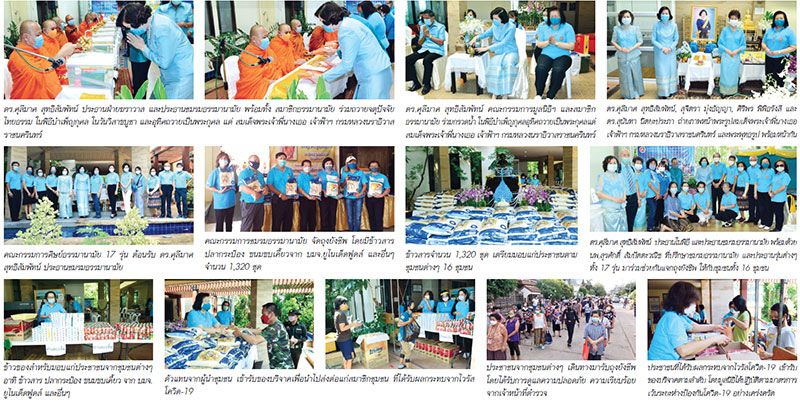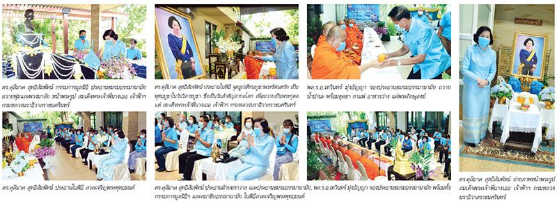 ในพิธีบำเพ็ญกุศล ได้นิมนต์พระสงฆ์ 10 รูปจากวัดกระจัง เขตตลิ่งชัน มาทำพิธีสวดเจริญพระพุทธมนต์ถวายเป็นพุทธบูชาในวันวิสาขบูชา และถวายเป็นพระกุศลแด่ สมเด็จพระเจ้าพี่นางเธอ เจ้าฟ้ากัลยาณิวัฒนา กรมหลวงนราธิวาสราชนครินทร์ และเนื่องจากช่วงนี้ได้เกิดวิกฤติโรคโควิด-19 ระบาดทั่วโลกและในประเทศไทย คณะนักศึกษาชมรมธรรมานามัยฯ ทั้ง 17 รุ่น นำโดยดร.ศุลีมาศ สุทธิสัมพัทน์ ประธานชมรมฯ ได้ร่วมกันบริจาคเงินและร่วมแรงร่วมใจกันบริจาคถุงยังชีพ โดยมีข้าวสารอาหารแห้ง ปลากระป๋อง ขนมขบเคี้ยว จากบมจ. ยูไนเต็ดฟูดส์ นม เครื่องดื่มต่างๆ และอื่นๆ อีกมากมาย 1,320 ชุด มอบแก่ประชาชนตามชุมชนต่างๆ จำนวน16 ชุมชน อาทิ ชุมชนตลิ่งชัน ชุมชนวัดทอง คนงานเขตตลิ่งชัน ชุมชนหรรษาชัยพัฒนาเพชรเกษม 81 ผู้ที่ได้ผลกระทบจากการระบาดไวรัสโควิด-19 ซึ่งการบริจาคถุงยังชีพ 1,320 ชุด ในครั้งนี้ เพื่อถวายเป็นพระกุศลแด่ สมเด็จพระเจ้าพี่นางเธอ เจ้าฟ้าฯ กรมหลวงนราธิวาสราชครินทร์ จึงถือว่าการทำบุญครั้งนี้ เป็นการทำบุญที่สมบูรณ์แบบ เพราะได้ทำทั้งบุญและทำทานทีเดียว