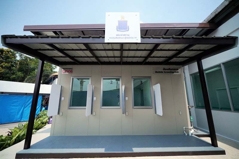 นวัตกรรมดังกล่าว สมเด็จพระกนิษฐาธิราชเจ้า กรมสมเด็จพระเทพรัตนราชสุดาฯ สยามบรมราชกุมารี พระราชทานพระราชานุญาตให้มูลนิธิชัยพัฒนาใช้งบประมาณจาก “กองทุนชัยพัฒนาสู้ภัยโควิด 19ฯ” จัดสร้างและพระราชทานเพื่อเป็นประโยชน์แก่โรงพยาบาลที่มีความต้องการ ทั้งนี้ ห้องคัดกรองและห้องตรวจเชื้อดังกล่าว เป็นเทคโนโลยีและนวัตกรรมของ SCG HEIM และ Living Solution โดยเอสซีจี ประกอบด้วยห้องตรวจคัดกรอง (Modular Screening Unit) ใช้ภายนอกอาคาร แบบมาตรฐาน ขนาด 3 ห้อง และห้องตรวจหาเชื้อ (Modular Swab Unit) ใช้ภายนอกอาคาร แบบมาตรฐาน ขนาด 3 ห้อง ซึ่งสามารถรองรับจำนวนผู้ที่เข้ามาตรวจคัดกรองและตรวจหาเชื้อได้เป็นอย่างดี อีกทั้ง ใช้เวลาติดตั้งเพียง 3 วัน ทำให้สามารถรับมือสถานการณ์การแพร่ระบาดของโควิด-19 ได้อย่างทันท่วงที และช่วยลดโอกาสในการติดเชื้อของบุคลากรทางการแพทย์และผู้เข้ารับการตรวจทั้งยังสร้างความปลอดภัยให้แก่ผู้ป่วยอื่นๆ นอกจากนี้ โรงพยาบาลยังสามารถนำนวัตกรรมดังกล่าวไปใช้ประโยชน์ในการดูแลผู้ป่วยโรคระบบทางเดินหายใจอื่นๆ ในอนาคตได้อีกด้วย