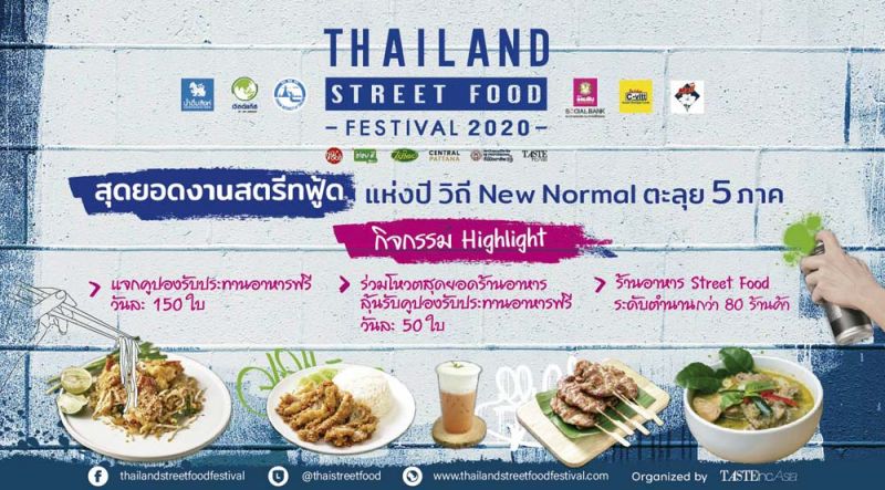 ติดตามความน่าสนใจของโครงการ Thailand Street Food Festival 2020 สุดยอดสตรีทฟู้ด ระดับประเทศแห่งปีวิถี New Normal ได้ทุกช่องทางออนไลน์ พร้อมให้ลงทะเบียนผ่านเว็บไซต์ www.thailandstreetfoodfestival.com/ หรือ Line @thaistreetfood ลุ้นรับ Gift Voucher สำหรับรับประทานฟรี วันละ 200 ใบ มูลค่าใบละ 100 บาท