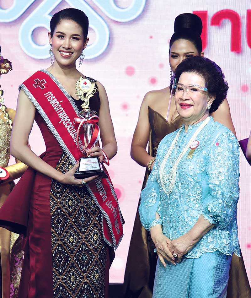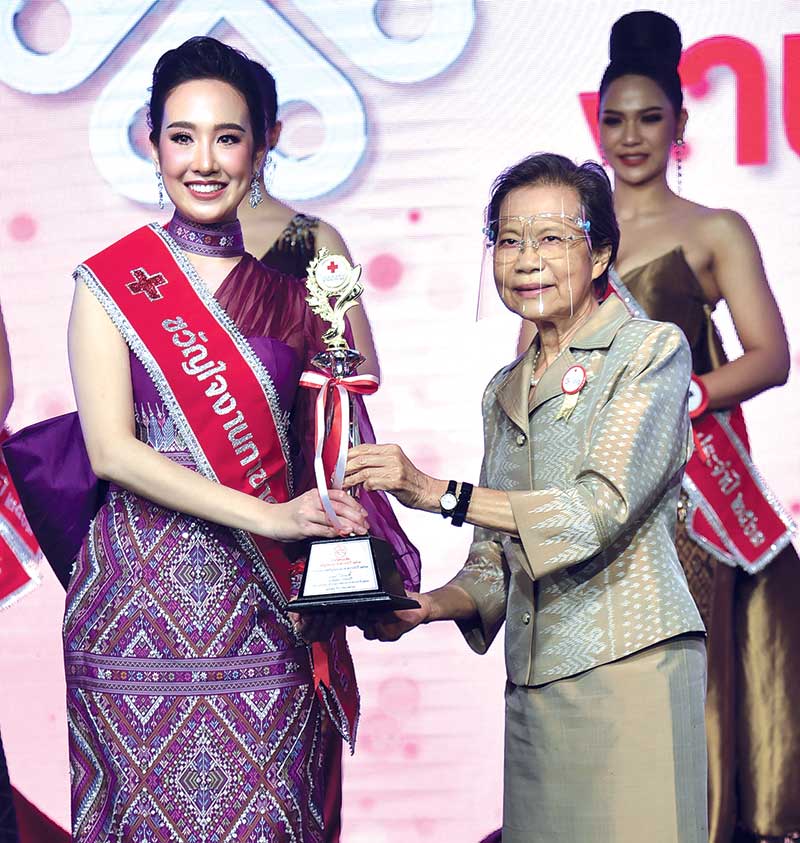 คุณหญิงชฎา วัฒนศิริธรรม มอบรางวัลขวัญใจงานกาชาดประจำปี 2563 แก่ กรวิภา อินทามระ