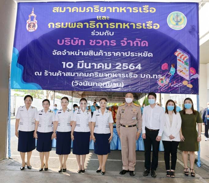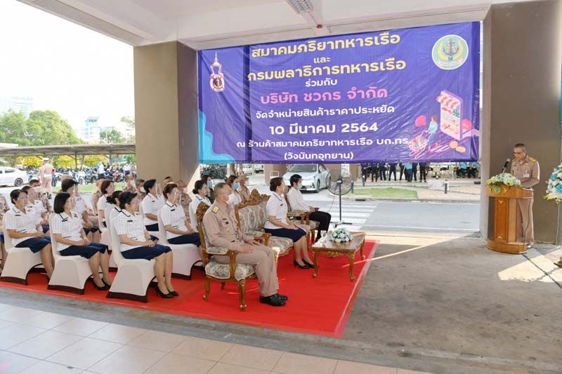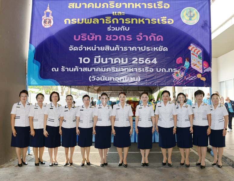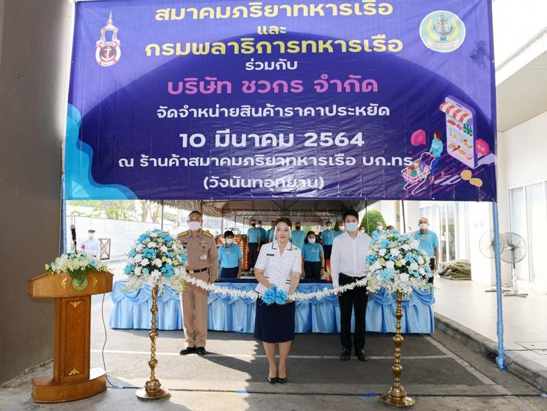 คุณจุฬารัตน์ ศรีวรขาน นายกสมาคมภริยาทหารเรือ เป็นประธานในพิธีเปิดการจำหน่ายสินค้าราคาประหยัด โดยมี อุปนายกสมาคมภริยาทหารเรือ และคณะกรรมการบริหารสมาคมภริยาฯ ร่วมพิธีฯ การจัดจำหน่ายสินค้าราคาประหยัดในครั้งนี้ สมาคมภริยาทหารเรือ ร่วมกับ กรมพลาธิการทหารเรือ และบริษัท ชวกร จำกัด ได้จัดหาสินค้าราคาถูกมาจำหน่าย เพื่อเป็นการแบ่งเบาภาระค่าครองชีพของครอบครัวข้าราชการ ลูกจ้าง และพนักงานราชการกองทัพเรือ ในพื้นที่กรุงเทพฯ และปริมณฑล รวมทั้งพื้นที่ภาคตะวันออก