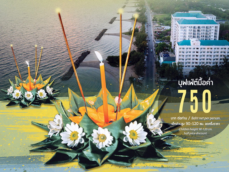 โรงแรมแคนทารี เบย์ ระยอง นำเสนอบุฟเฟ่ต์อาหารค่ำเลิศรสนานาชนิด ท่านละ 750 บาทถ้วน พร้อมชมการประกวดกระทงและนางนพมาศ ซึ่งทุกท่านสามารถร่วมบริจาคเงินซื้อดาวโหวตคะแนนให้นางนพมาศที่คุณชื่นชอบ โดยรายได้จากการขายดาวมอบให้ มูลนิธิเด็กโสสะแห่งประเทศไทย ในพระบรมราชินูปถัมภ์ โทร.038-804844