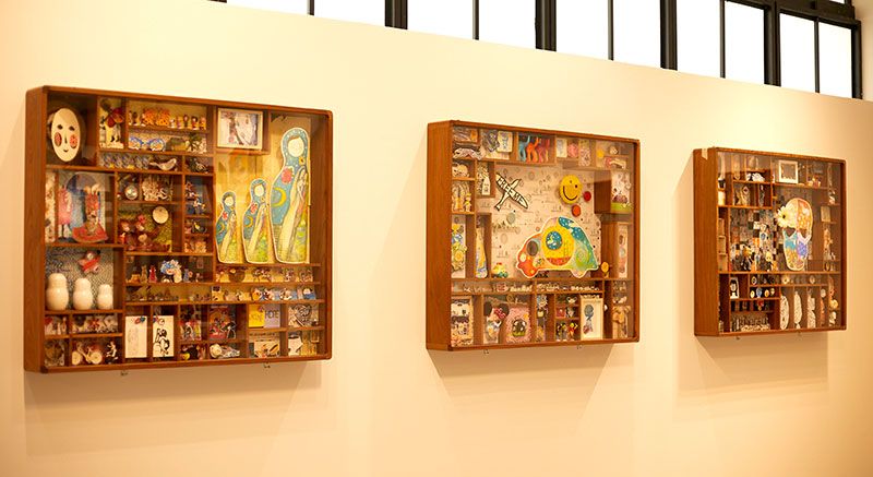 ผลงานที่นำมาจัดแสดงในนิทรรศการครั้งนี้ตอกย้ำถึงความเลือนรางของเส้นแบ่งพรมแดนระหว่างศิลปะและงานออกแบบ ด้วยผลงานของเหล่านักออกแบบที่ข้ามสายการทำงานมาสู่พรมแดนของศิลปะ ดังจะเห็นได้จากผลงานของ ชูเกียรติ ลิขิตปัญญารัตน์ นักออกแบบผู้คร่ำหวอดในวงการดีไซน์ กับผลงานศิลปะจัดวางที่หยิบเอาจินตนาการ ความรู้สึกนึกคิด รวมถึงประสบการณ์ ความหลงใหล การศึกษาเรียนรู้ และการใช้ชีวิตที่ผ่านมาของเขามาประมวลผลผ่านระบบอัลกอริทึมส่วนตัวจนกลายเป็นภาพแทนตนเอง ดังคำกล่าวที่ว่า“เรากินอะไร เราก็เป็นแบบนั้น” สิ่งละอันพันละน้อยเหล่านี้ถูกแสดงออกผ่านศิลปะวัตถุชิ้นเล็กชิ้นน้อยที่จัดแสดงภายในพิพิธภัณฑ์จำลอง หรืออันที่จริง พิพิธภัณฑ์แห่งจิตใจ (Museum of mind) ของเขานั่นเอง