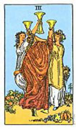 อิทธิพลของไพ่ 3 ถ้วย (Three of Cups) คุณที่คบหากับคนรักมานานจะได้ใช้ชีวิตคู่ร่วมกัน และคนที่ไม่เคยมีแฟน จะได้พบรักกับคนดีเป็นคู่แท้ถูกใจเรา ทำให้ชีวิตหายเงียบเหงาเสียที ด้านการเงินจะมีเข้ามาเรื่อยๆ และบางรายจะมีโชคลาภจากพี่น้อง ทำให้เงินทองเดินสะพัดไม่ติดขัด ด้านการงานจะทำงานอย่างมุ่งมั่นจนเป็นที่ยอมรับของคนอื่น และคนที่มีงานส่วนตัวไปได้ดีตามเป้าหมายที่วางไว้ ควรไหว้บูชาหลวงพ่อโสธรจะเสริมชะตาชีวิตเราให้ดียิ่งๆขึ้น