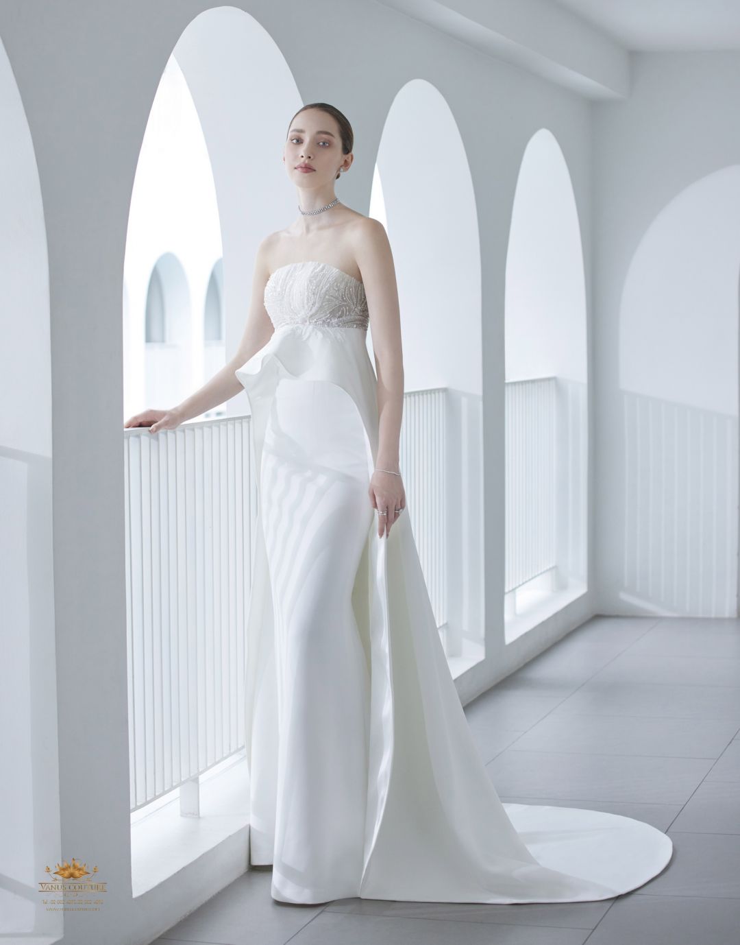 สุดเลอค่าออกมามากเป็นประวัติการณ์ กับผลงานภายใต้ชื่อ "Vanus autumn-winter bridal couture" เป็นอีกหนึ่งคอลเลกชันที่น่าจับตามองมากที่สุดในเวลานี้ เพราะชุดแต่งงานแต่ละชุดที่ออกแบบมานั้นอิงตามเทรนด์แฟชั่นของเวทีระดับโลก ลักษณะพิเศษอยู่ที่งานดีไซน์ที่เน้นความลักชูรี่ เรียบหรูดูโมเดิร์น อย่างมีรสนิยมและมีเอกลักษณ์เฉพาะไม่ซ้ำใคร แพทเทิร์นดูโดดเด่นโอบรับสรีระได้อย่างพอดิบพอดีเน้นสัดส่วนให้ดูเป็นผู้หญิงมากขึ้น เผยให้เห็นช่วงอก คอ และ ไหล่ ให้ความรู้สึกเซ็กซี่เบา ๆ เพิ่มความหรูหราด้วยผ้าคลุมไหล่และกระโปรงทรงเมอร์เมดคอมพลีตลุคเรียบหรูได้อย่างลงตัว ถึงแม้ชุดจะดูเรียบง่ายให้ลุคคูล ๆ ดูคลาสสิกแต่ผู้สวมใส่ก็สามารถโดดเด่นมีออร่าสะดุดตาราวกับเจ้าหญิงได้เช่นกัน จึงนับเป็นอีกหนึ่งคอลเลกชันที่โดนตกไปแล้วหนึ่ง เพราะดูจะถูกอกถูกใจเหล่าเจ้าสาวสายมินิมอลและสายเกาหลีไม่น้อยเลยทีเดียวค่า