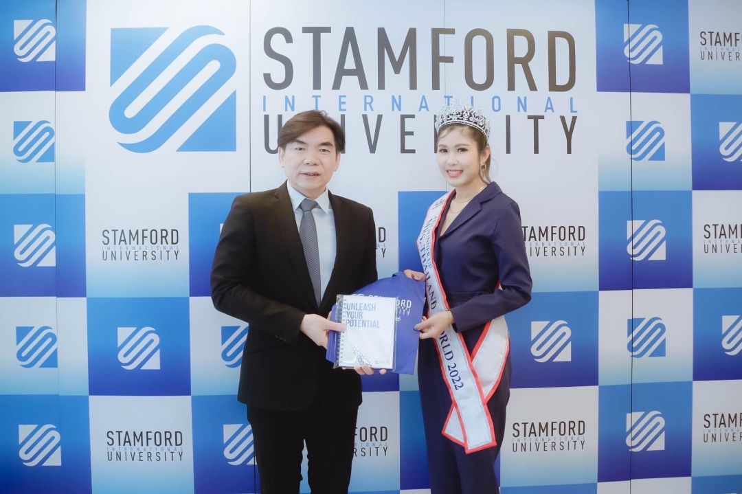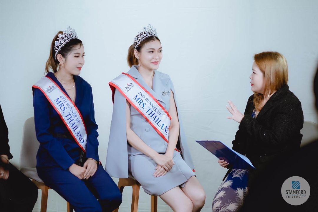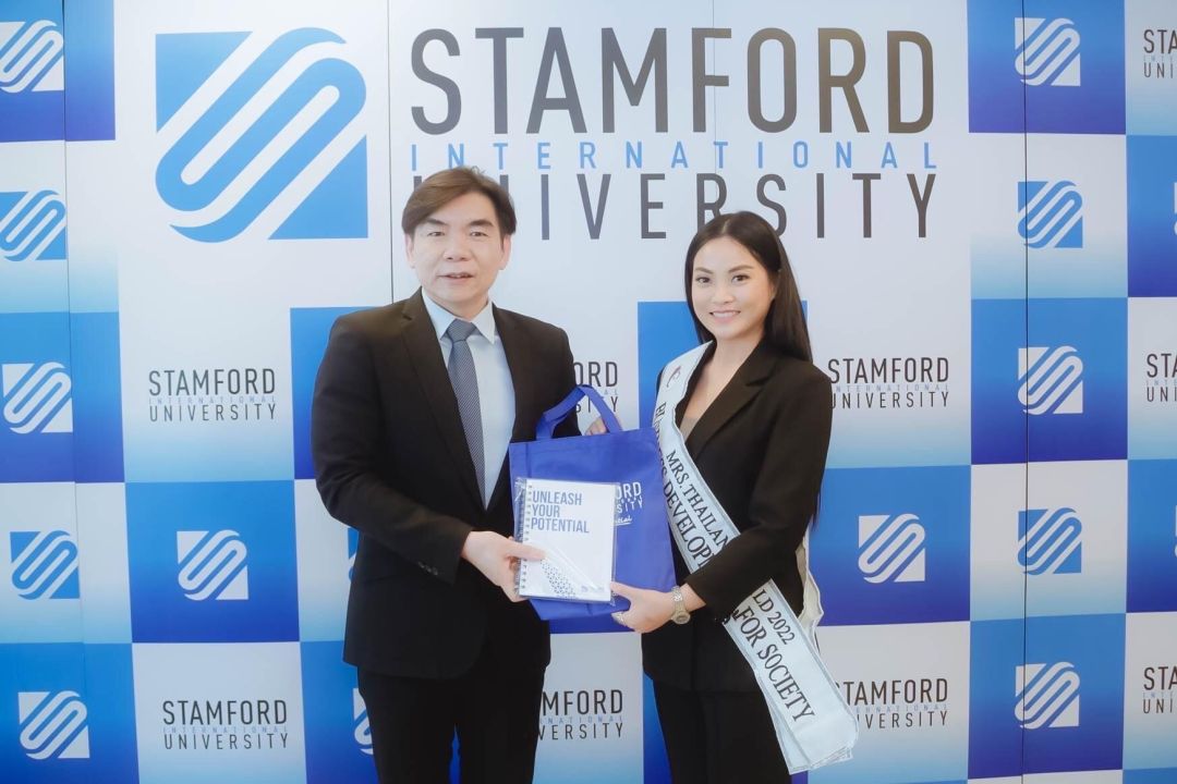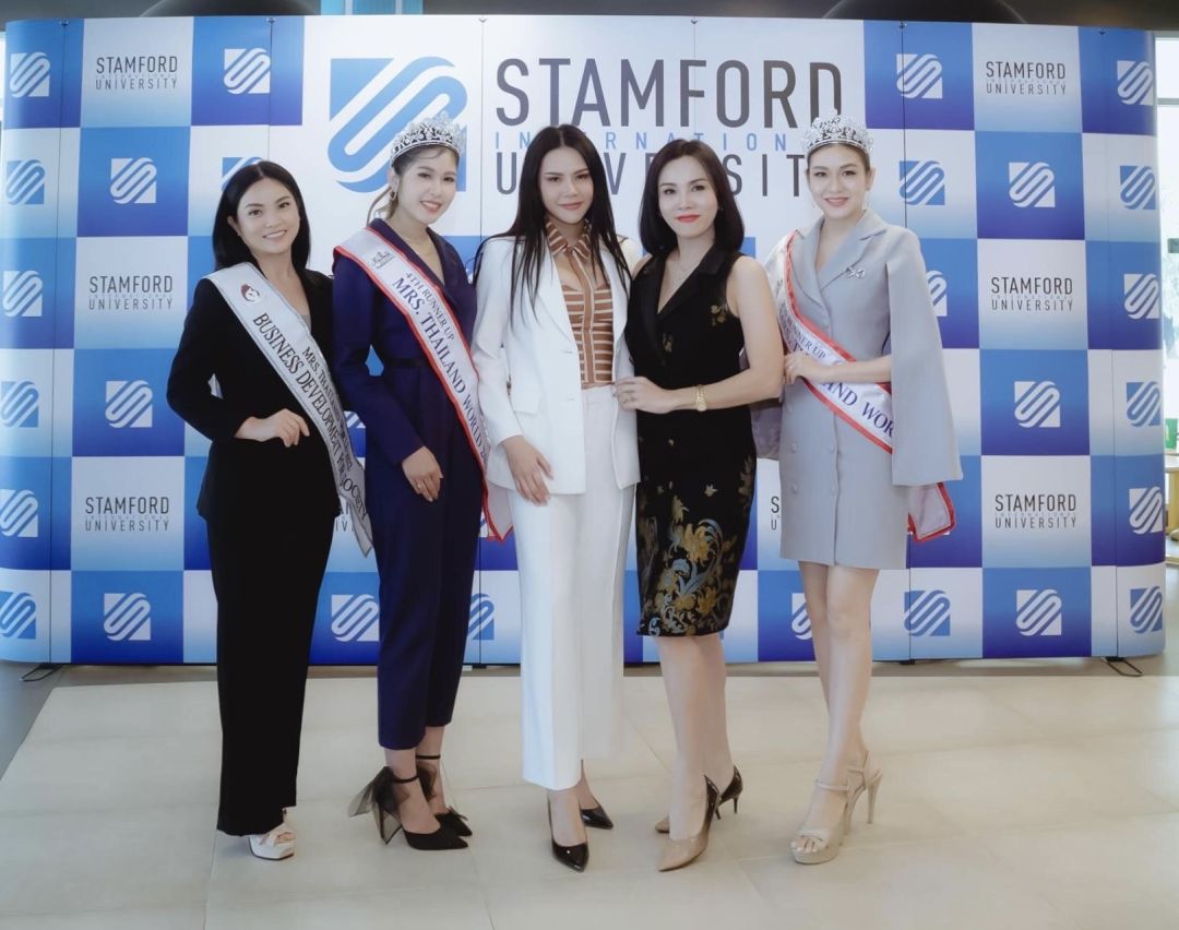 ในกาลนี้ คณะนางงาม Mrs.Thailand World ได้เข้าพบท่านอธิการบดีมหาวิทยาลัย ฯ เพื่อแสดงความขอบคุณ ในฐานะที่ทางมหาวิทยาลัย Stamford International Universityได้ให้การสนับสนุนมาโดยตลอด ภายใต้แนวคิด “มากกว่าความสวยคือความสามารถ” เวทีที่ไม่ได้คัดสรรแค่เพียงความสวย เท่านั้น แต่..! พวกเราคือ Roll Model ของสตรี ปัจจุบัน M Power มีอิทธิพลบทบาทมากนอกเหนือจากความเป็นแม่ ต้องมีทั้งการบริหารจัดการที่ดี ด้านครอบครัว ธุรกิจ สังคม และการศึกษา เพื่อพัฒนาศักยภาพพร้อมที่จะส่งต่อ ..เป็นผู้ให้..! “ยิ่งให้ยิ่งได้”Mrs Thailand World องค์กรเพื่อสตรี ยึดมั่นบนความชัดเจนของบริบท เป็นเวทีที่ส่งเสริมศักยภาพสตรี