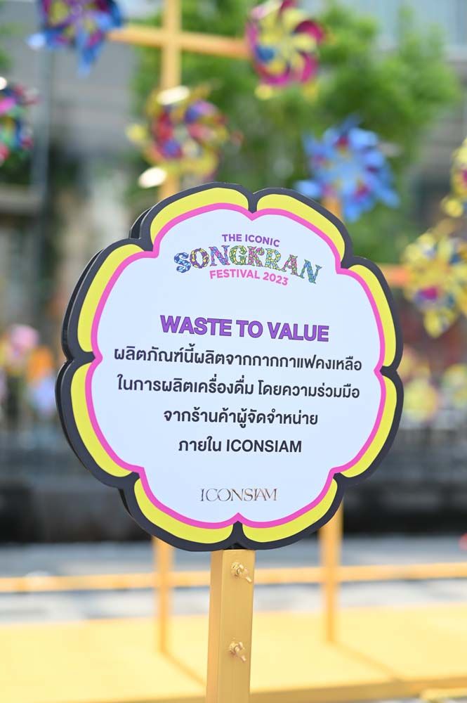 วันนี้ 17 เมษายน วันสุดท้ายสำหรับกิจกรรมความสนุก เล่นน้ำสงกรานต์ผ่านอุโมงค์น้ำขนาดใหญ่ ซึ่งไฮไลต์อันโดดเด่นคือภาชนะบรรจุน้ำหรืออ่างน้ำหลากหลายขนาดสร้างสรรค์จากกากกาแฟเหลือใช้แห่งเดียวในประเทศไทย ตั้งอยู่บริเวณ ริเวอร์ พาร์ค พร้อมให้ทุกคนและเด็กๆ สาดความชุ่มฉ่ำได้อย่างสนุกสนาน โดย ไอคอนสยาม จับมือร่วมกับผู้ประกอบการร้านกาแฟภายในไอคอนสยาม เช่น ร้าน Starbucks, ร้าน Coffee Beans by Dao, ร้าน True Coffee,ร้านกาแฟ %Arabica, ร้านอาหาร D’ARK, ร้านกาแฟ Pacamara Coffee Roaster, ร้าน CPS Coffee, ร้าน Café Amazon และเซเว่น อีเลฟเว่น นำกากกาแฟเหลือใช้ มาสร้างสรรค์ใหม่เป็นผลิตภัณฑ์บรรจุน้ำและเก้าอี้ที่ใช้ภายในงานซึ่งเป็นกระบวนการรีไซเคิลจากวัสดุเหลือใช้สู่การสร้างสรรค์ผลิตภัณฑ์ขึ้นมาใหม่ เพื่อร่วมรักษ์โลกอย่างยั่งยืน ด้วยความมุ่งมั่นและให้ความสำคัญต่อความรับผิดชอบต่อสังคมสิ่งแวดล้อม และวัฒนธรรม หนึ่งในพันธกิจที่ไอคอนยังคงดำเนินมาอย่างต่อเนื่องโดยตลอด คือการอนุรักษ์ทรัพยากรธรรมชาติและสิ่งแวดล้อมบริเวณแม่น้ำเจ้าพระยาโดยรอบ