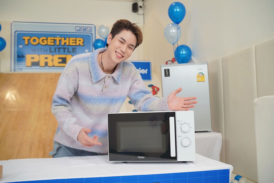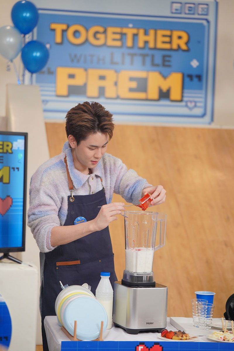 อีกหนึ่งกิจกรรม หนุ่มเปรมยังได้แสดงฝีมือการทำเมนูขนมหวานอย่างวาฟเฟิลชวนให้น้ำลายสอ ที่มาพร้อมกับ ตู้เย็นมินิบาร์ Haier รุ่น HR-80 ทำให้สามารถเตรียมเมนูแสนอร่อยในครั้งนี้ได้อย่างง่ายดาย ด้วยระบบทำความเย็นที่ปรับได้ถึง 5 ระดับ ช่วยให้วัตถุดิบที่แช่คงความสดใหม่อยู่เสมอ นอกจากนี้บานประตูยังถูกออกแบบมาให้สามารถเลือกเปิดสลับซ้ายขวาได้ตามความต้องการ พร้อมด้วย เตาอบไมโครเวฟ Haier รุ่น HMW-M2301W ที่ใช้งานได้สะดวกรวดเร็วเพียงหมุนปรับอุณหภูมิความร้อนและตั้งเวลาตามที่เราต้องการ และยังมีโปรแกรมละลายอาหารแช่แข็งอำนวยความสะดวกให้สามารถเตรียมวัตถุดิบได้ไวขึ้นอีกด้วย