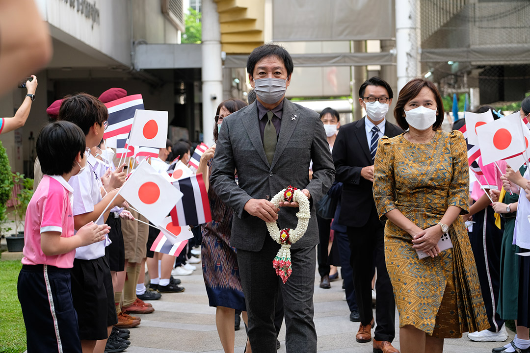 การแลกเปลี่ยนในครั้งนี้จึงเป็นที่จับตามอง และเป็นการแลกเปลี่ยนที่หลายโรงเรียนทั่วประเทศญี่ปุ่นใฝ่ฝัน ดังนั้น นอกจากการแลกเปลี่ยนระหว่างเด็กเพียงประการเดียว กระผมเองก็ตั้งใจที่จะแลกเปลี่ยนและมีมิตรสัมพันธ์อันดีกับผู้ใหญ่ทุกท่าน ไม่แพ้เด็กๆ เช่นกัน เฉกเช่นสมาชิกของครอบครัว และขอให้คงอยู่ตราบนานเท่านาน”
