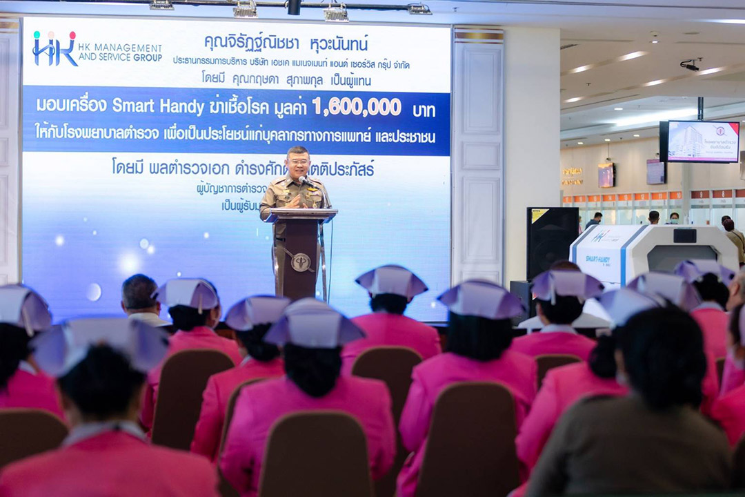 Smart handy นวัตกรรมการฆ่าเชื้อ ผลงานคนไทย ที่ ผบ.ตร. สนับสนุนให้ความสำคัญ ต่อความปลอดภัย โดยได้รับมอบเครื่องฆ่าเชื้อจากบริษัท เอชเคแมเนจเมนท์ แอนด์ เซอร์วิส กรุ๊ป จำกัด เพื่อส่งต่อให้ รพ.ตำรวจ นำไปใช้ประโยชน์ในทางการแพทย์ ผบ.ตร. เป็นประธานการรับมอบเครื่องฆ่าเชื้อโรค Smart handy นวัตกรรมการฆ่าเชื้อที่คิดค้นพัฒนาขึ้นโดยคนไทยเพื่อ คนไทย มูลค่า กว่า 1.6 ล้านบาท จากบริษัท เอชเคแมเนจเมนท์ แอนด์ เซอร์วิส กรุ๊ป จำกัด โดย พลตำรวจเอก ดำรงศักดิ์ กิตติประภัส ผู้บัญชาการตำรวจเเห่งชาติ เป็นผู้รับมอบ พร้อมคณะ โรงพยาบาลตำรวจ พล.ต.ท.โสภณรัชต์ สิงหจารุ พตร. ,พล.ต.ท.บุณยรัสน์ พุกกะเวส นายแพทย์ (สบ8) รพ.ตร. , พล.ต.ต.วัชรินทร์ พิภพมงคล นายแพทย์ (สบ7) รพ.ตร. , รศ.พล.ต.ต.กิตติ์ธนทัต เลอวงศ์รัตน์ รอง พตร.