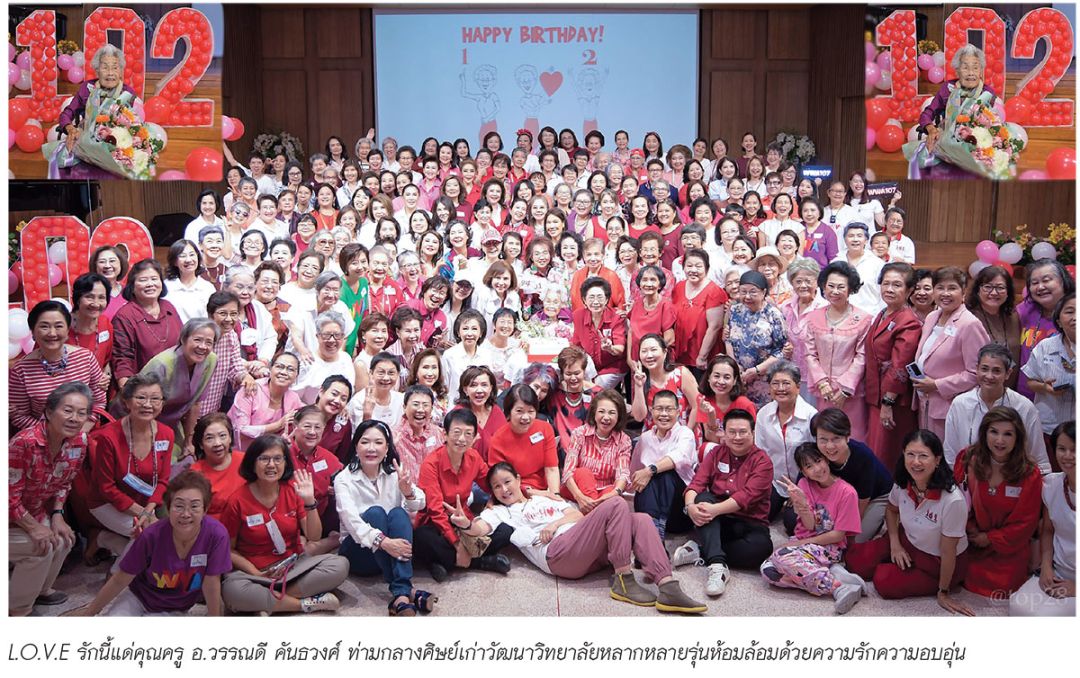 เหล่าศิษย์วัฒนาร่วมแรงร่วมใจเนรมิตงานเลี้ยงฉลองวันคล้ายวันเกิดครบรอบ 102 ปี อาจารย์วรรณดี คันธวงศ์ ภายใต้ธีมงาน “L.O.V.E รักนี้แด่คุณครู” เมื่อวันเสาร์ที่ 7 ตุลาคม 2566 ณ ห้องประชุมนีลสันเฮส์ โรงเรียนวัฒนาวิทยาลัยที่สดใสไปด้วยการประดับตกแต่งโดยใช้สีแดงขาวประจำโรงเรียนและสีชมพู บรรยากาศงานดำเนินไปด้วยความอบอุ่น สนุกสนานเป็นกันเองระหว่างอาจารย์และลูกศิษย์รุ่นต่างๆ รวมทั้ง ศจ.ดร.แพง ชินพงศ์ นายกสมาคมศิษย์วังหลัง-วัฒนา พร้อมคณะกรรมการเข้มแข็งรวมตัวกันมาอวยพรวันเกิดอาจารย์อย่างคับคั่ง