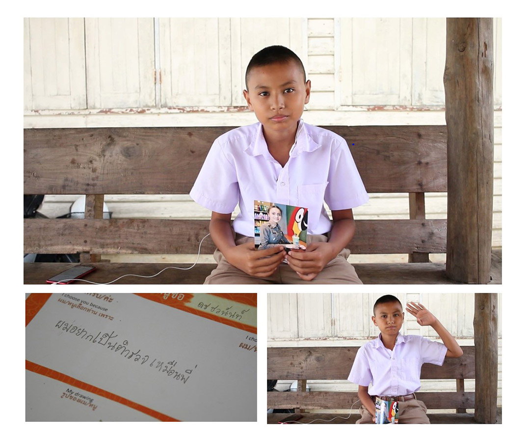 “ตอนนี้หนูอยู่ชั้นประถมศึกษาปีที่ 3 ค่ะ โตขึ้นหนูอยากเป็นครู หนูเลือกภาพนี้เพราะพี่เค้าดูใจดี พี่เค้าเหมือนแม่ของหนู ผิวขาว ผมยาวเหมือนแม่ของหนูค่ะ หนูไม่ได้อยู่กับแม่ค่ะ พ่อกับแม่หย่ากันแล้ว หนูอยู่กับพ่อ พี่ชายแล้วก็ป้าค่ะ หนูคิดถึงแม่ค่ะ หนูไม่เคยได้เจอแม่เลย แม่ไปมีครอบครัวใหม่ค่ะ” เด็กหญิงเปรมสุดา โครงการพัฒนาฯ สงขลา (สทิงพระ) กล่าวถึงความรู้สึกในการได้มีโอกาสเลือกผู้อุปการะด้วยตนเอง