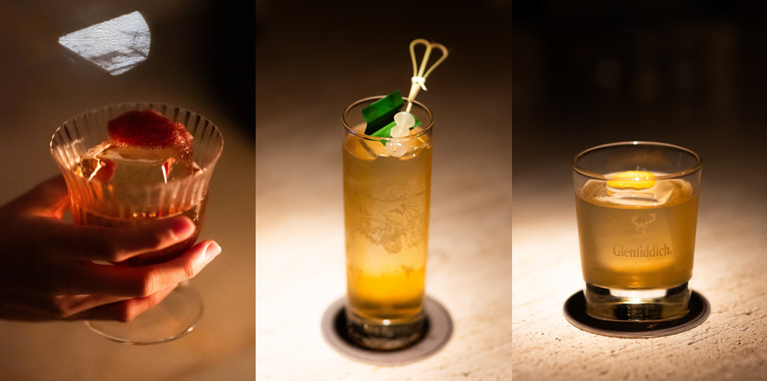 นอกจากนี้ เพื่อถ่ายทอดความรู้สึกใน 3 ห้วงเวลาของชีวิต คุณชัชยังได้ร่วมกับ Glenfiddich รังสรรค์เครื่องดื่มสุดพิเศษที่ถ่ายทอดคำว่า Adventurous ผ่านเครื่องดื่มทั้ง 3 แบบ ให้มีกลิ่นอายของการเดินทางและการผจญภัยของชีวิต เริ่มตั้งแต่ ช่วงเวลาของความ Passionate ที่สะท้อนออกมาในค็อกเทล Glenfiddich 15 ปี ที่โดดเด่นเรื่องความแปลกใหม่ไม่เหมือนใคร ให้รสสัมผัสที่เด่นชัด เข้มข้น เหมือน passion ที่แรงกล้า พร้อมวัตถุดิบหลักอย่างเฮเซลนัท และใช้กรานิตาไวน์แดงเพื่อให้รสชาติมีความกลมกล่อมมากขึ้น ต่อด้วยช่วงที่สองของความ Mysterious ซึ่งถือเป็นช่วงของการค้นหาและอยากพัฒนาตัวเองให้สุด โดยช่วงเวลานี้ถูกถ่ายทอดผ่าน Glenfiddich 12 ปี ในค็อกเทลที่ดื่มง่าย ภายนอกอาจดูธรรมดาแต่รสชาติมีความซับซ้อน เปรียบเสมือนการค้นหาตัวตนที่ต้องการบาลานซ์ชีวิต ซึ่งค็อกเทลแก้วนี้ให้รสชาติของส้มจี๊ดและกลิ่นพีชไปพร้อม ๆ กับการผสมผสานกับกลิ่นใบเตยเผาและท็อปด้วย “ลูกชก” ผลไม้ของจังหวัดพังงา จบด้วยช่วงเวลาของความ Clarity ที่ใช้ Glenfiddich 18 ปี ที่ให้สัมผัสเข้มและนุ่มลึกเฉพาะตัว ผสมออกมาเป็นค็อกเทลที่มีกลิ่นของคาโมมาย และวิสกี้สโมคกี้ นอกจากนั้นเราจะได้กลิ่นซีทรัสที่ให้ความรู้สึกผ่อนคลาย เหมือนช่วงเวลาที่คุณชัชใช้ชีวิตที่เขาหลักอย่างชัดเจนและเรียบง่ายอย่างในปัจจุบัน