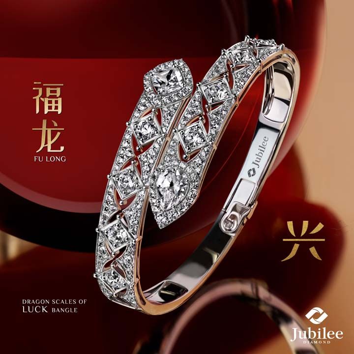 ปี 2024 นับเป็นวาระพิเศษที่ปีนักษัตรเปี่ยมไปด้วยพลังบารมีมากที่สุด เพราะเป็น “มังกรทอง” สัตว์ศักดิ์สิทธิ์ที่ทรงพลังอำนาจทั้งผืนฟ้าและผืนดิน โดยคนจีนเชื่อว่ามังกรเป็นสัญลักษณ์มงคลที่นำมาซึ่งความสุขอันอุดมสมบูรณ์โชคลาภ และอายุที่ยืนยาว เป็นที่มาและแรงบันดาลใจให้ยูบิลลี่ ไดมอนด์ เลือกรังสรรค์คอลเลคชั่น “Fu Long : The Dragon of Prosperity Collection” ประกอบด้วยตัวอักษรจีนมงคลคำว่า “福” (Fú) แปลว่าโชคดีมีสุข และ “龙” (Lóng) แปลว่ามังกร เพื่อถ่ายทอดความงดงามสมัยใหม่ ผสมผสานความเชื่อ โดยหยิบยกสัญลักษณ์สัตว์มงคลอย่าง “มังกร” และ “ปลามังกร” มาออกแบบเป็นลวดลายอันทรงพลัง